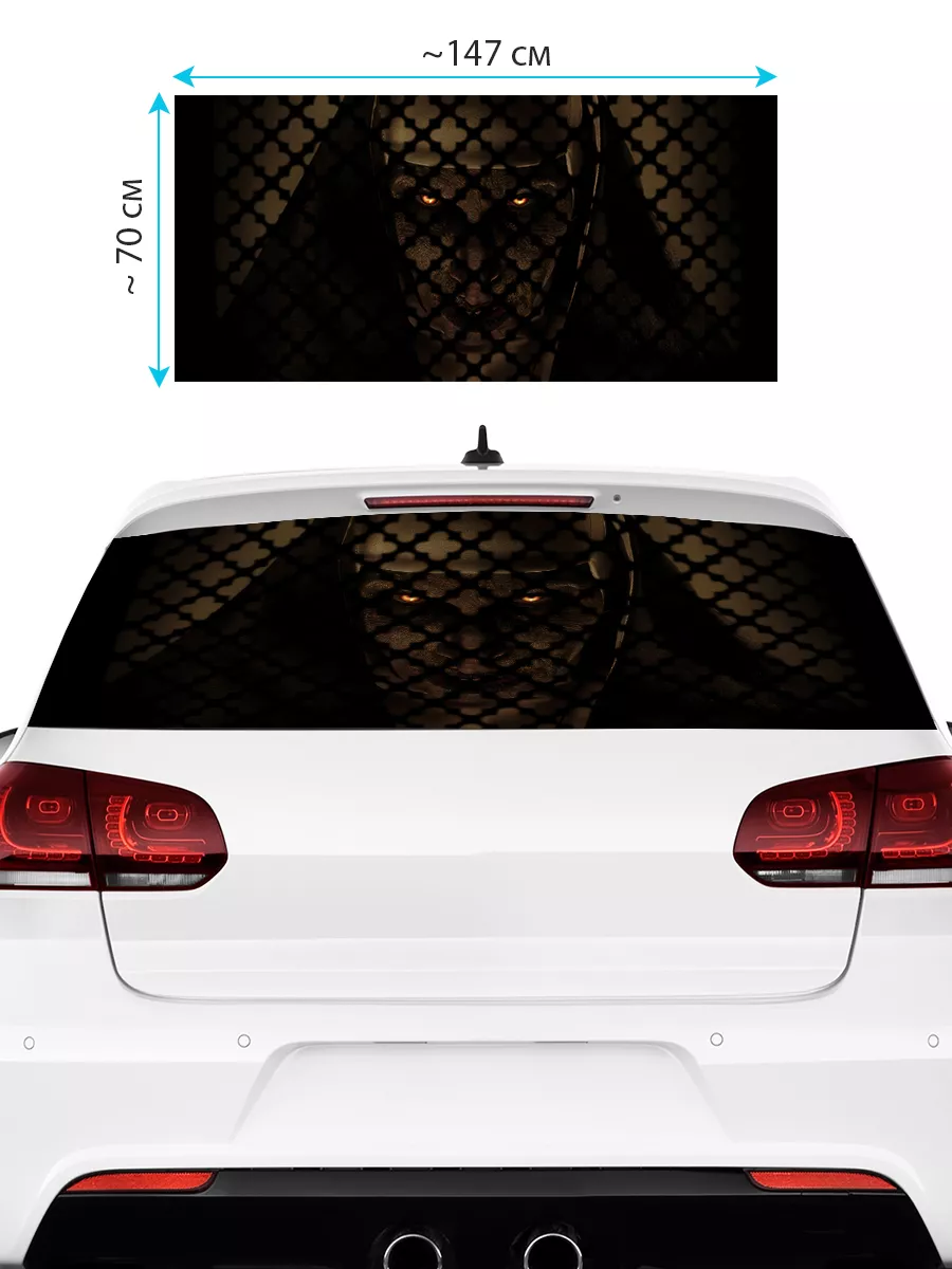 Эта наклейка представляет собой большую декоративную сетку для заднего стекла автомобиля. Она изготовлена из самоклеящейся виниловой перфорированной пленки ПВХ, что обеспечивает надежное крепление к поверхности и стойкость к мытью и неблагоприятным погодным условиям. При желании можно подрезать полотно под нужный размер. В линейке присутствуют варианты с надписями, изображениями животных, аниме и другими стилями, что позволяет подобрать подходящий дизайн под стиль автомобиля.