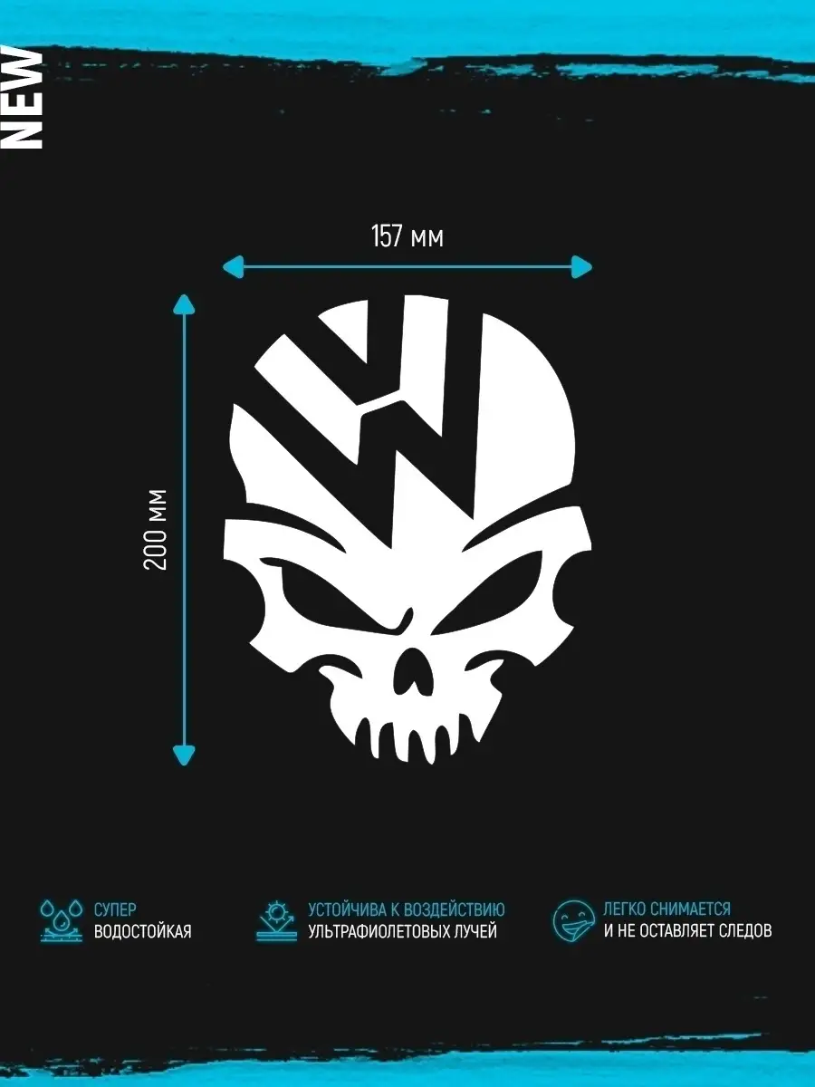 Эта наклейка выполнена на указанной пленке и имеет дизайн черепа белого цвета, предназначена для нанесения на лобовое стекло, боковые стекла, кузов и другие поверхности автомобиля.