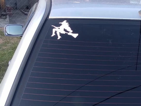 Наклейка на авто ведьма на метле от Stickerboss позволяет придать автомобилю загадочный стиль и индивидуальность. Выполнена из высококачественной самоклеящейся пленки ПВХ Oracal, цвет — белый, стойкий к воздействию внешней среды. Дизайн изображает величественную ведьму на метле, парящей сквозь звездное небо, что добавляет образу мистики и движения.