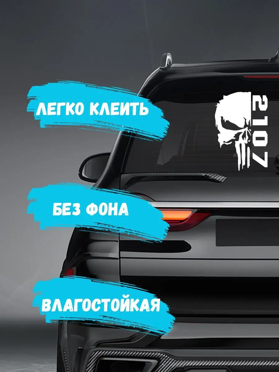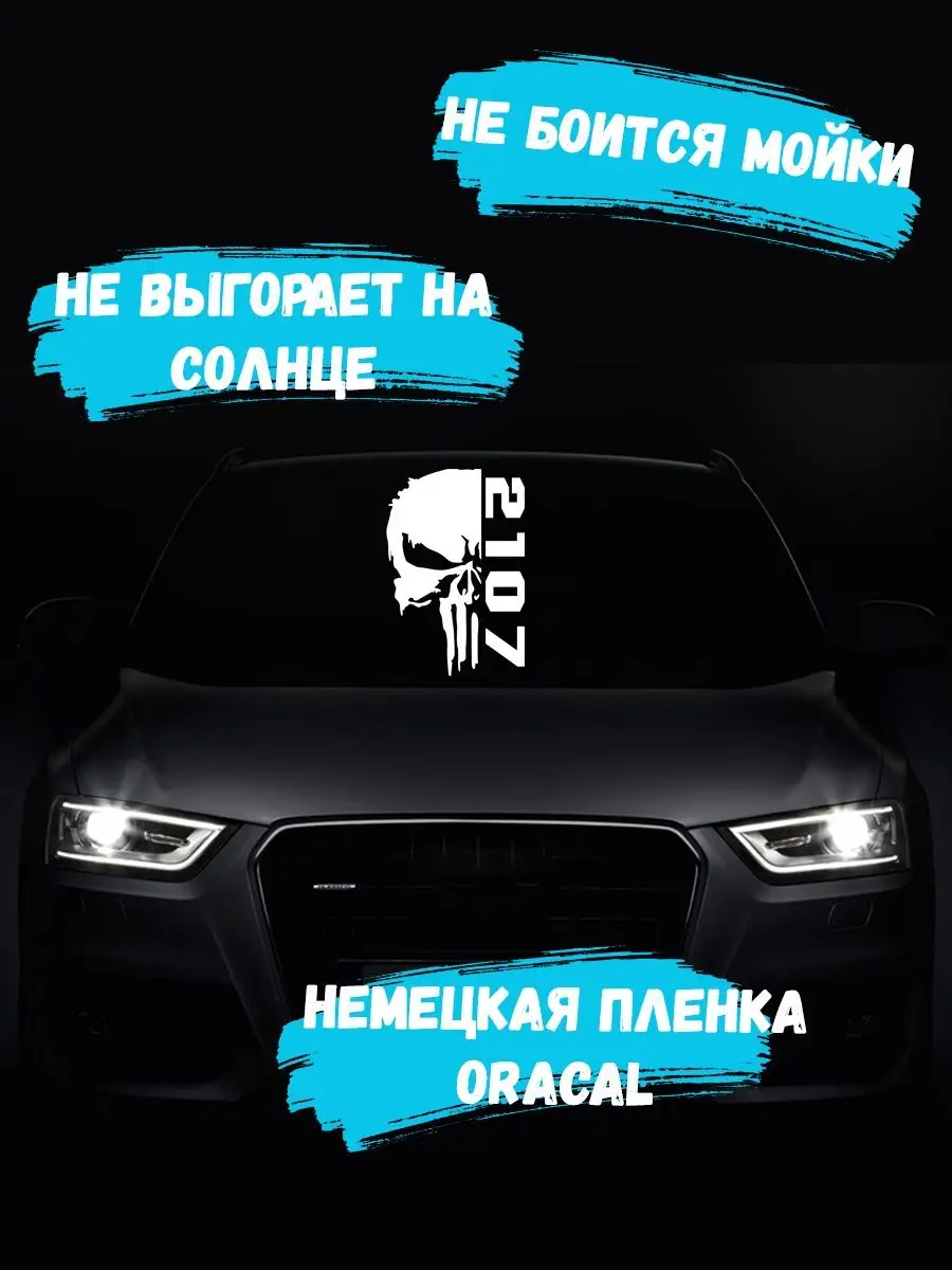 Стильная наклейка на авто череп 2107 белая на виниле Oracal позволяет добавить агрессивный и индивидуальный акцент вашему автомобилю. Благодаря высококачественной пленке она сохраняет цвет и форму под воздействием воды, солнца и ветра.