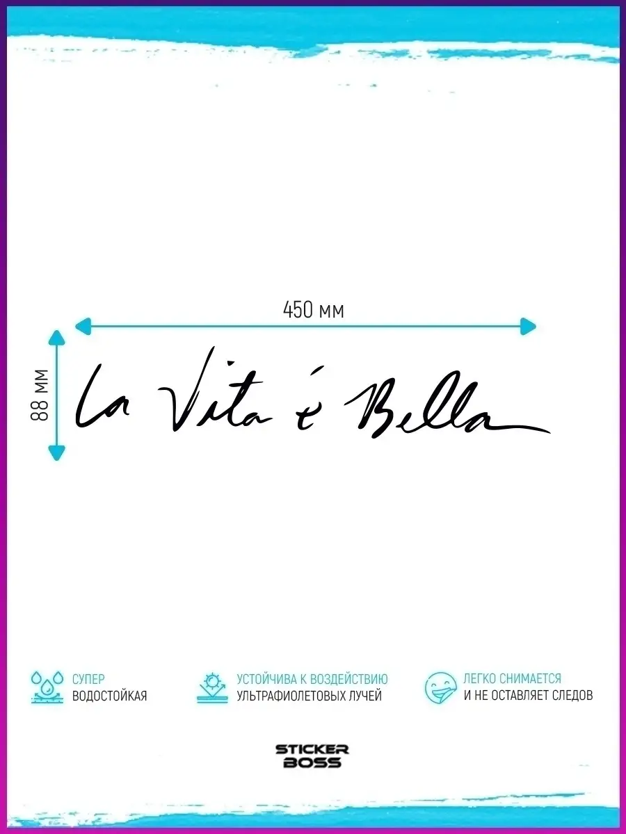 Наклейка Stickerboss для автомобиля с надписью La Vita E Bella выполнена в черном цвете и позволяет добавить нотку итальянского стиля в дизайн авто. Изготовлена на прочной виниловой самоклеющейся пленке Oracal, она устойчива к влаге, солнечному свету и экстремальным температурам, а также совместима с автомобильными моющими средствами.