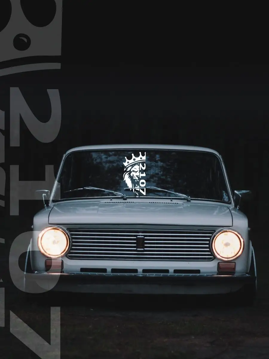 Наклейка на авто лев зубы 2107 от Stickerboss — стильный элемент декора, подчеркивающий силу и уверенность водителя. Лев в короне слева, справа — название марки автомобиля. Размер 45×31,4 см позволяет разместить наклейку на стекле, капоте или кузове.