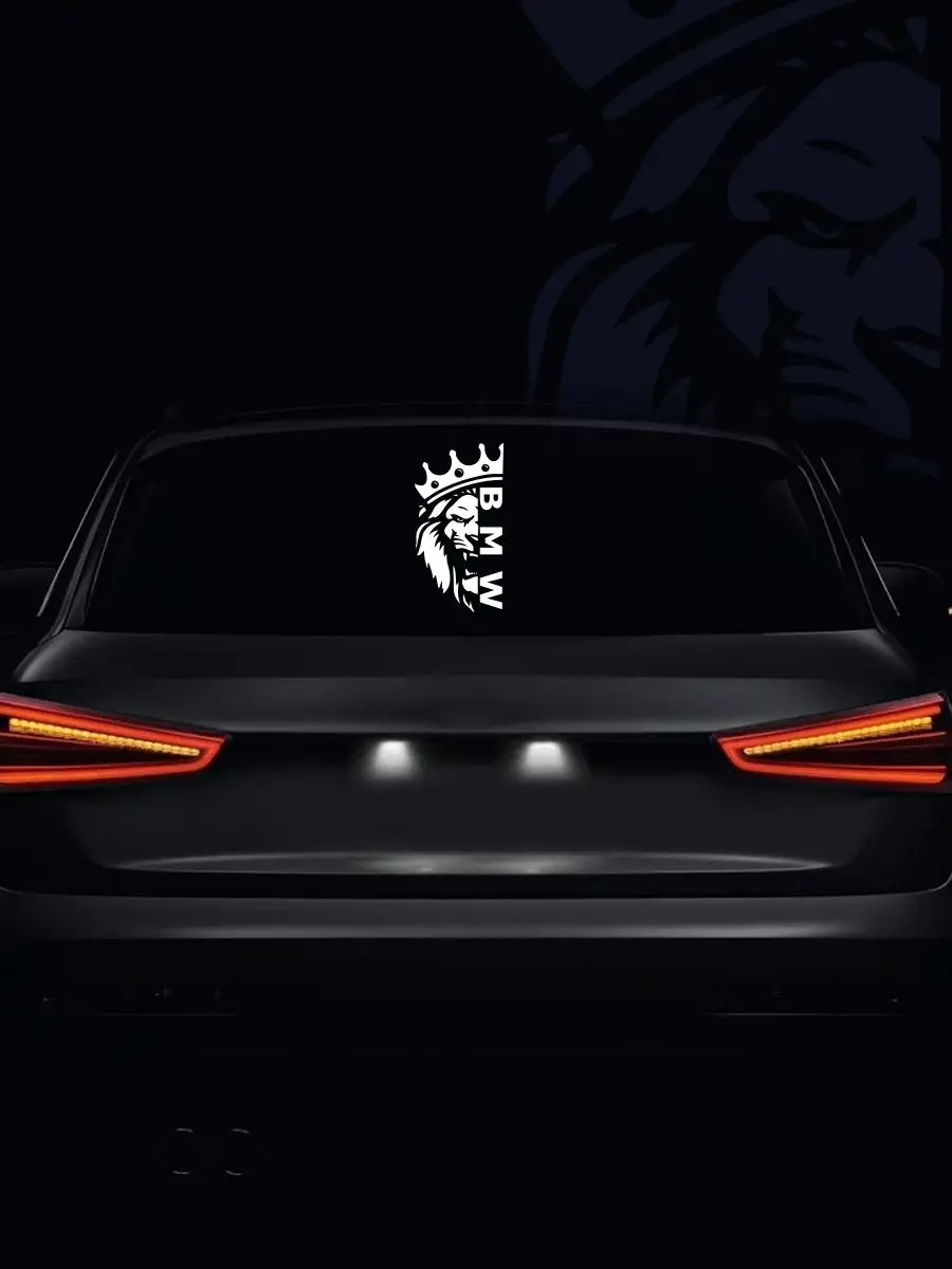 Наклейка Stickerboss для автомобиля — декоративный элемент тюнинга, который позволяет подчеркнуть индивидуальность вашего авто. Размер 45x31,4 см подходит для стекла, капота и кузова. На наклейке слева изображена голова льва в короне, справа — название марки, что создаёт контраст и акцент на стиль владельца.