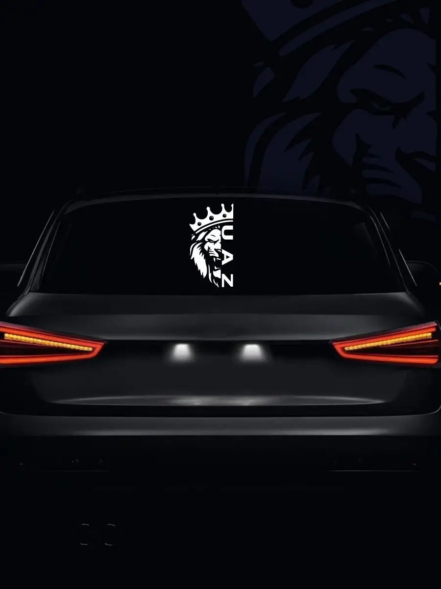 Дизайн: слева изображена голова льва в короне, символизирующая мощь и благородство; справа — название марки автомобиля. Качественный винил обеспечивает долговечность и стойкость к атмосферным воздействиям.