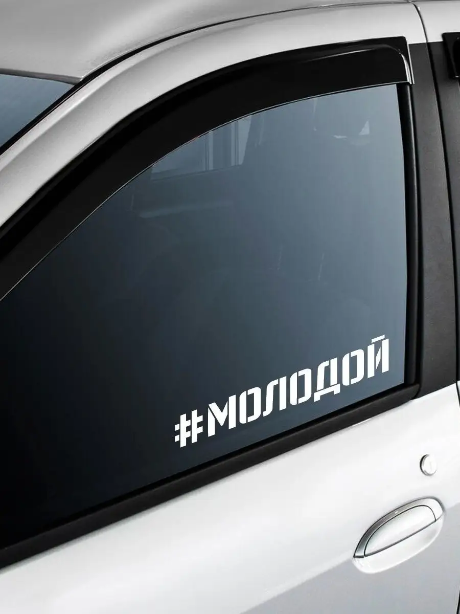 Наклейка на авто Молодой от Stickerboss добавляет стильный акцент автомобилю с минимальными рисками для лакокрасочного покрытия. Надпись выполнена на качественной виниловой пленке ПВХ Oracal белого цвета и сохраняет яркость при солнечном свете.