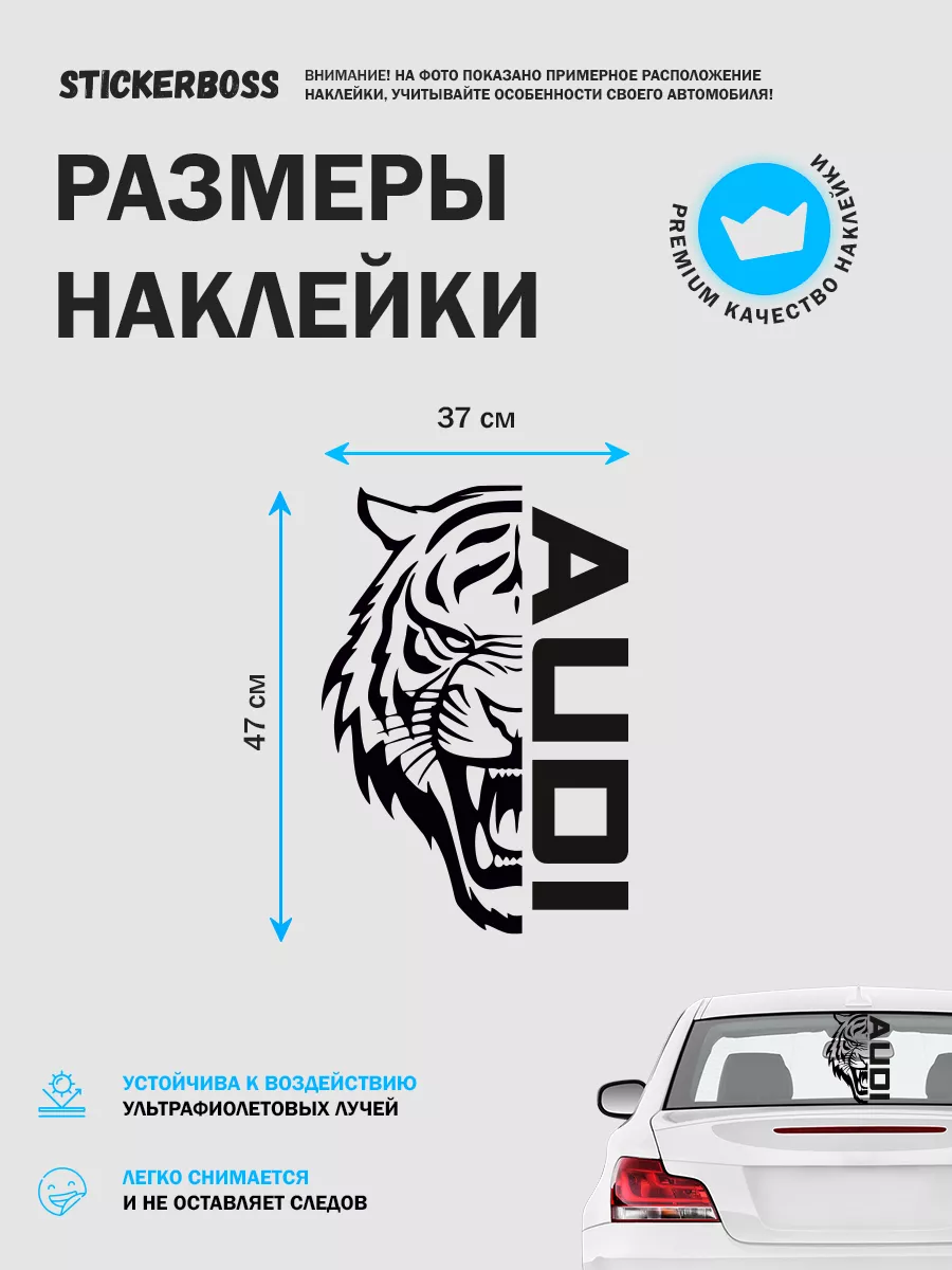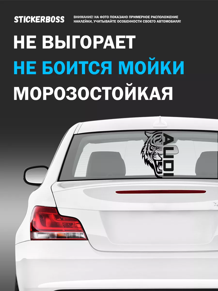 Эта наклейка предназначена для внешнего тюнинга автомобиля и позволяет подчеркнуть характер и стиль вашего авто. Дизайн сочетает тигрий силуэт и надпись AUDI, выполненные на прочной виниловой плёнке.