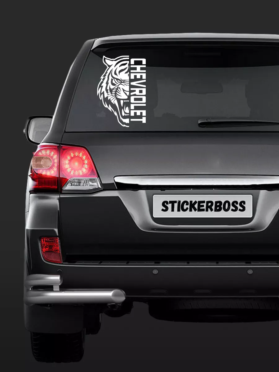 Stickerboss представляет наклейку на авто с тигриным образом, предназначенную для внешнего тюнинга. Изображение тигра на одной стороне и название марки на другой создают запоминающийся образ автомобиля.