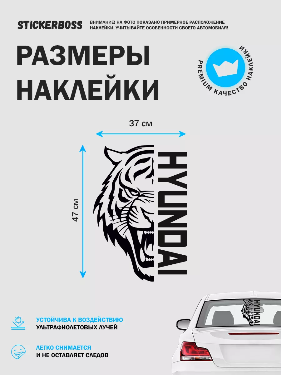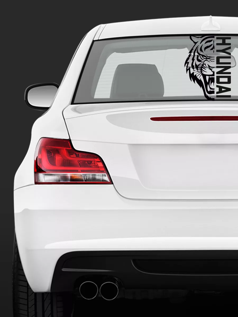 Эта наклейка на авто сочетает выразительный образ тигра и фирменный стиль HYUNDAI, подчеркивая характер и индивидуальность вашего автомобиля. Продукт предназначен для внешнего декорирования и не влияет на работу машины, а яркий контраст в черном цвете делает украшение заметным на дороге.