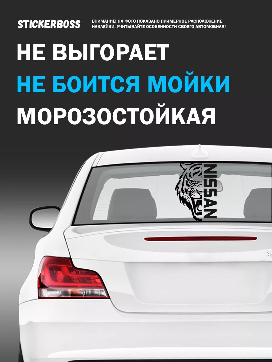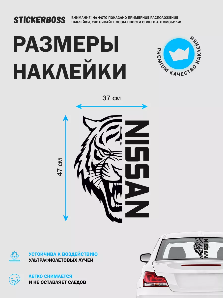 Стикеры Stickerboss — наклейка для капота и кузова. Одна сторона — тигр, другая — название марки, вписанное в дизайн. Изготовлена на виниловой пленке Oracal; устойчива к ультрафиолету и царапинам, легко наносится и снимается без остатка.