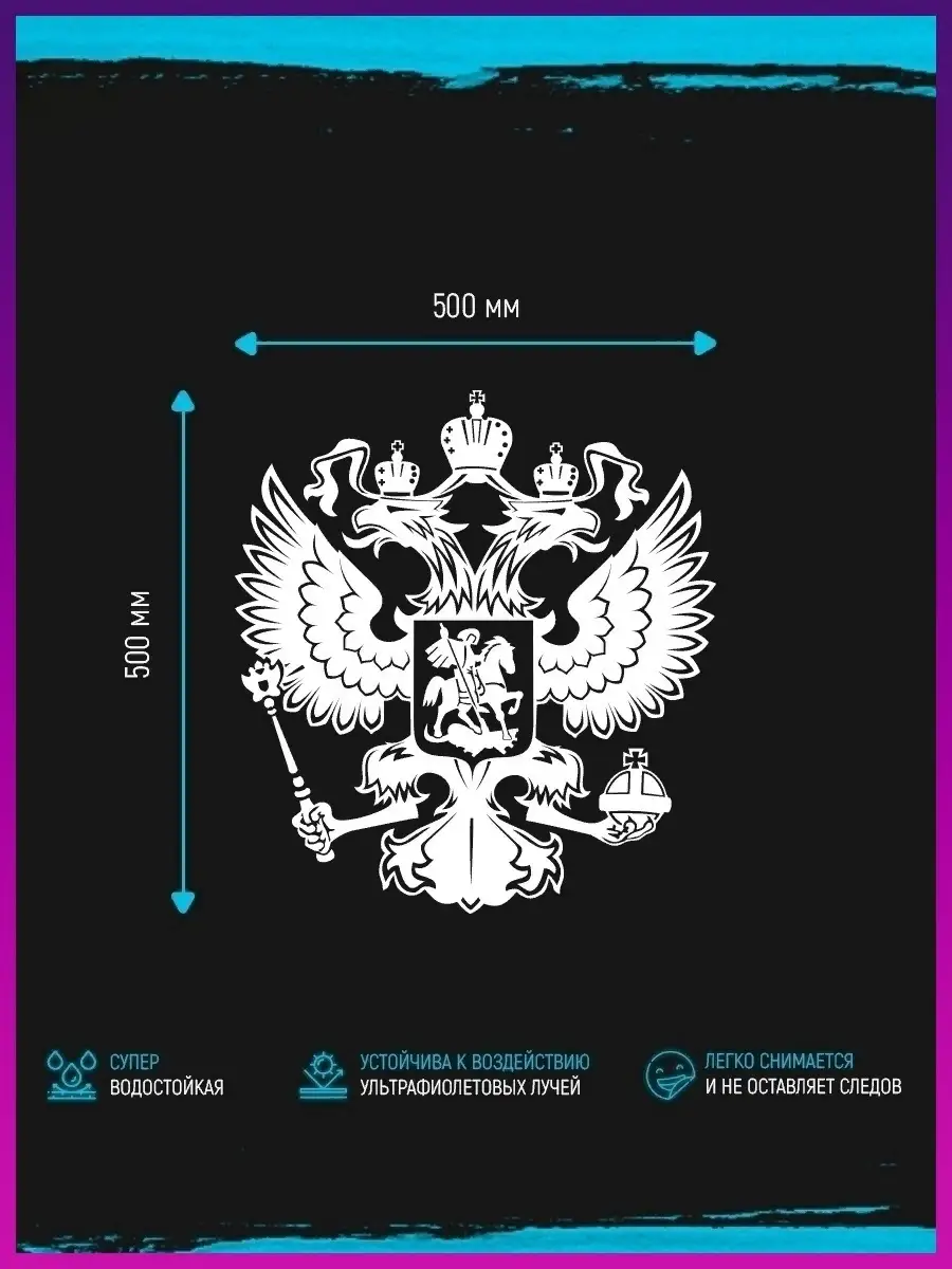 Наклейка на авто с гербом России без фона выполнена на высококачественной виниловой пленке ПВХ Oracal. Она рассчитана на нанесение на стекло и кузов автомобиля, защиту поверхности и создание стильного тюнинга без потери функциональности. Благодаря влагостойкой основе и стойкости к ультрафиолету изображение сохраняет контраст и цвет даже при длительной эксплуатации. При необходимости можно снять наклейку без следов, не повредит покрытие.