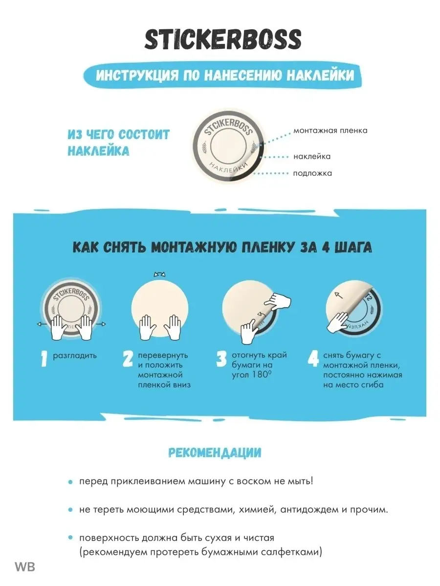 Протирайте наклейку влажной мягкой тканью; не используйте агрессивные растворители, чтобы сохранить внешний вид и клей.