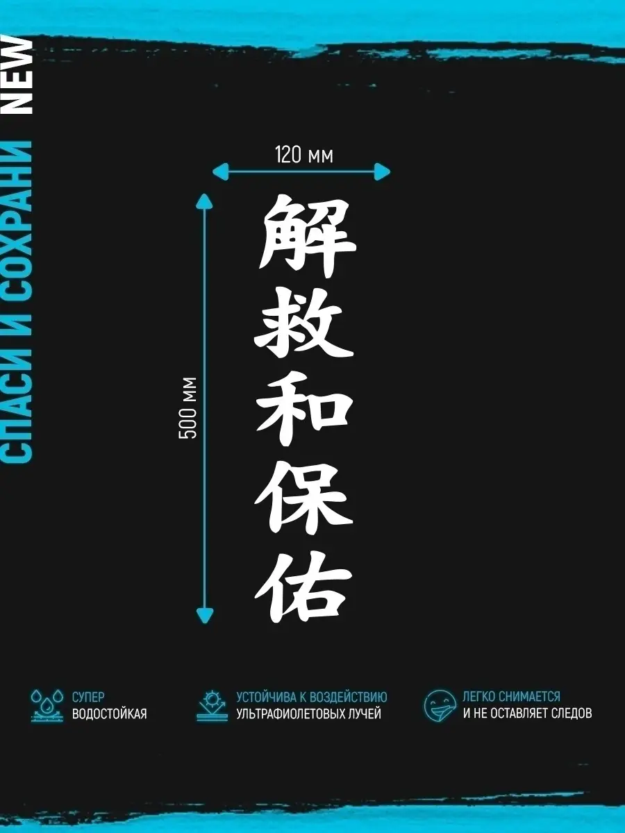 Эта виниловая наклейка Stickerboss с иероглифами СПАСИ И СОХРАНИ белого цвета предназначена для оформления автомобиля. Размер 50х12 см позволяет ей заметно выделяться на стекле и борту при сохранении гармоничного внешнего вида.