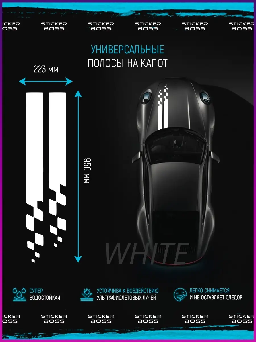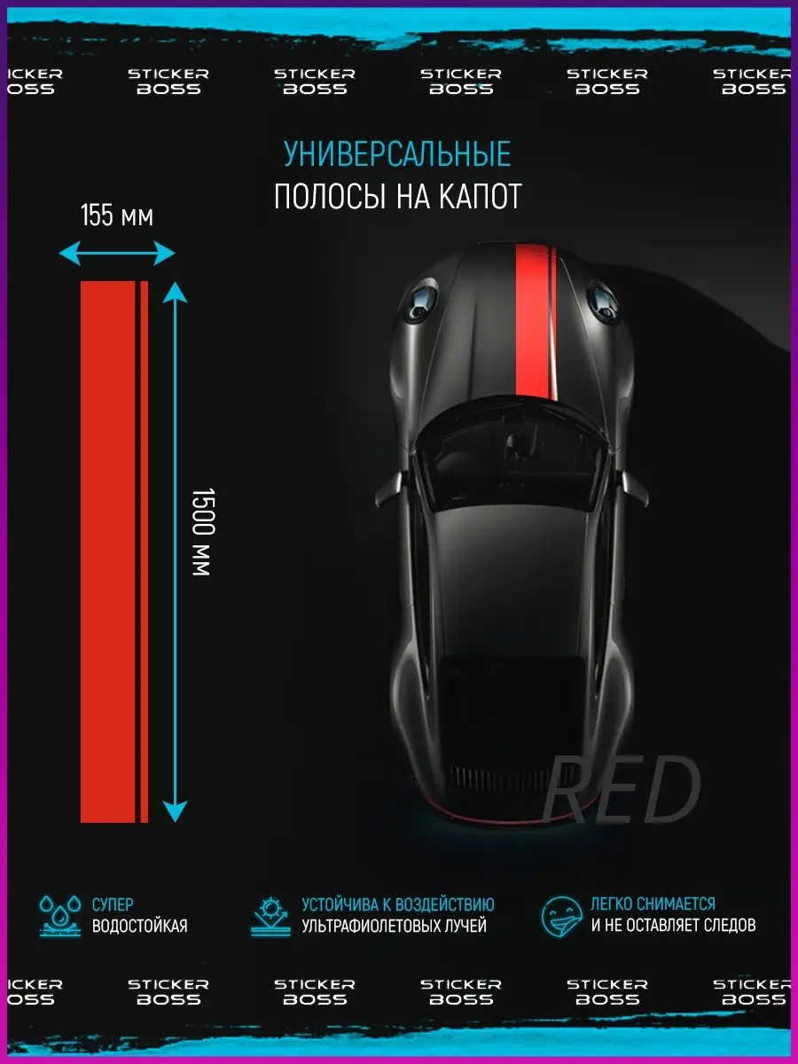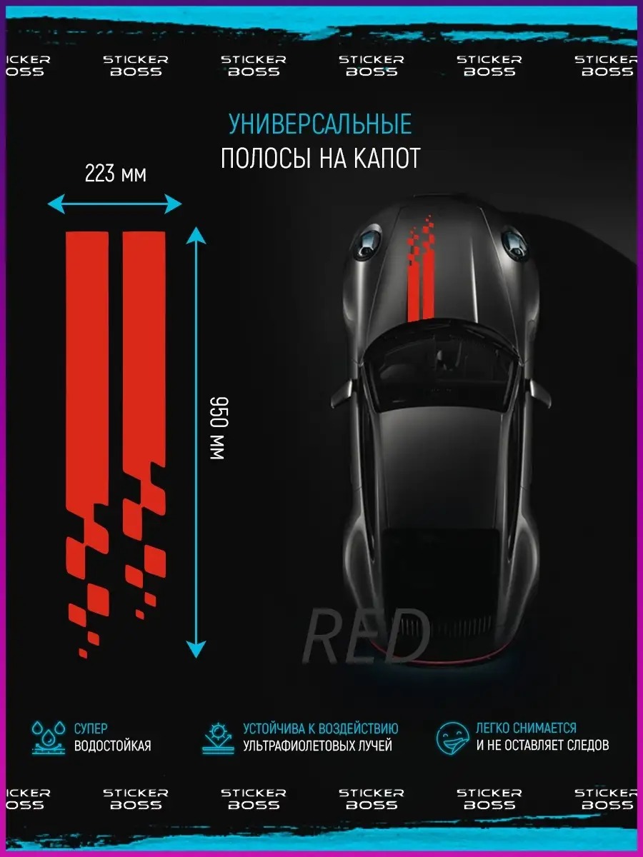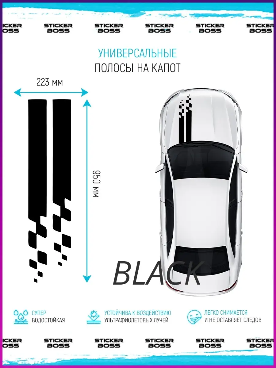 Предназначена для украшения капота и кузова автомобиля, подходит к любому цвету и стилю. Характерная для линии Stickerboss концепция информационные поможет подчеркнуть образ спортивного и динамичного авто.