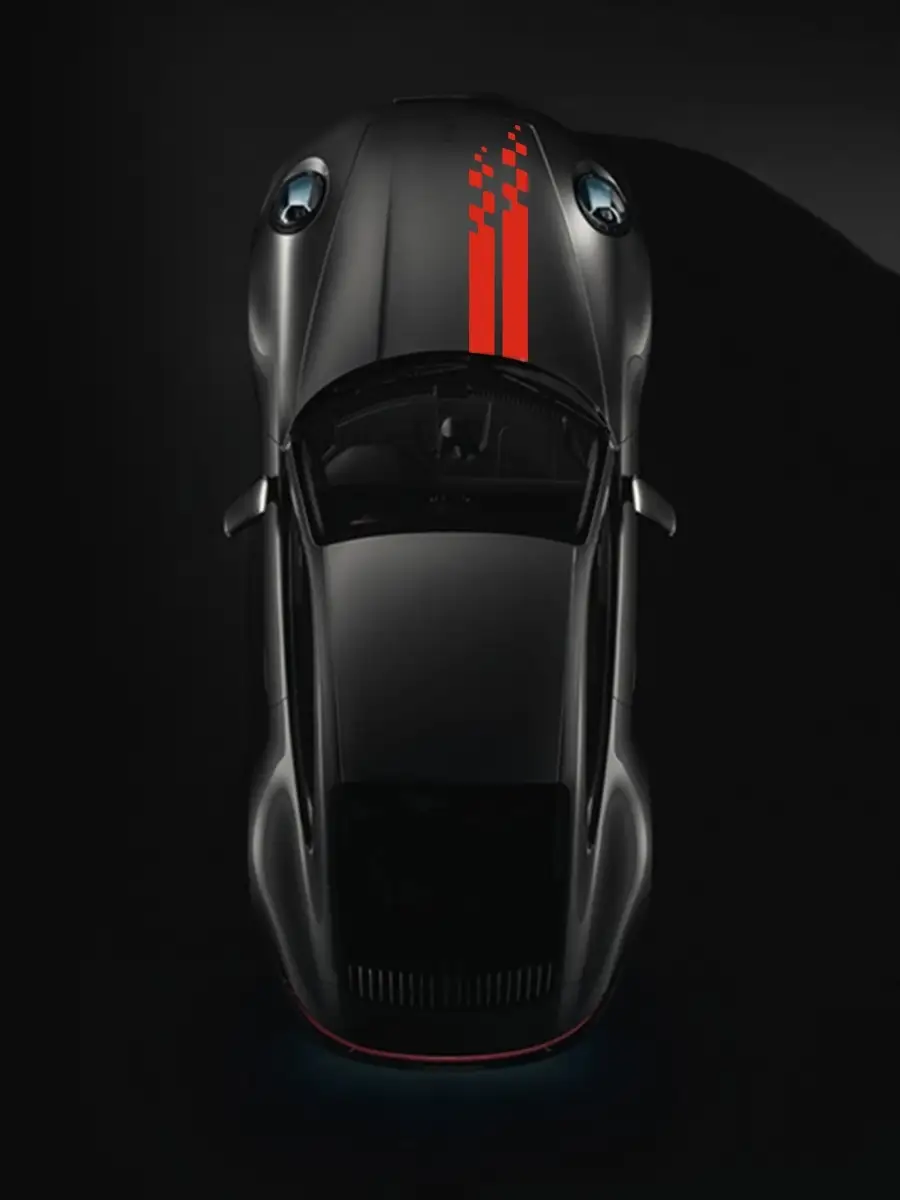 Наклейка Stickerboss — обновление внешнего вида автомобиля простым способом. Две полосы вдоль капота создают стильный шашечный акцент и спортивный образ.