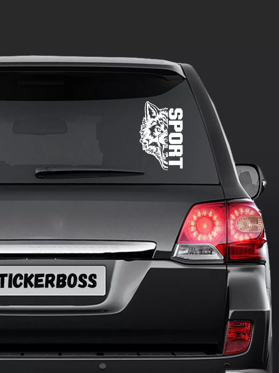 Наклейка на авто волк SPORT белый — премиальный декоративный элемент для тюнинга вашего автомобиля. Она выполнена на самоклеящейся виниловой пленке ПВХ и рассчитана на долговременную службу. Особенность изделия — двусторонний дизайн: с одной стороны изображение волчьего оскала, с другой — название марки вашего автомобиля, искусно вписанное в общий стиль. Наклейка устойчива к УФ-лучам и неблагоприятным погодным условиям, легко наносится и не оставляет следов при удалении. Производство — Россия, бренд Stickerboss.