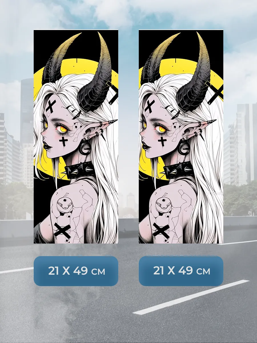 Наклейки предназначены для боковых стоек автомобиля и подойдут для большинства моделей. Дизайн сочетает элементы аниме, манги и японской эстетики, что позволяет подчеркнуть индивидуальность транспортного средства и выделиться на дороге.
