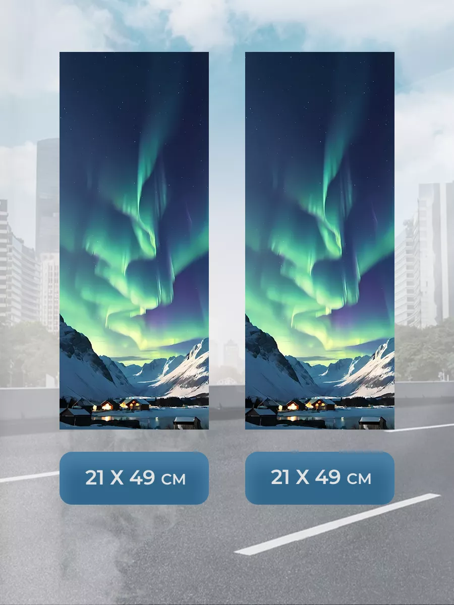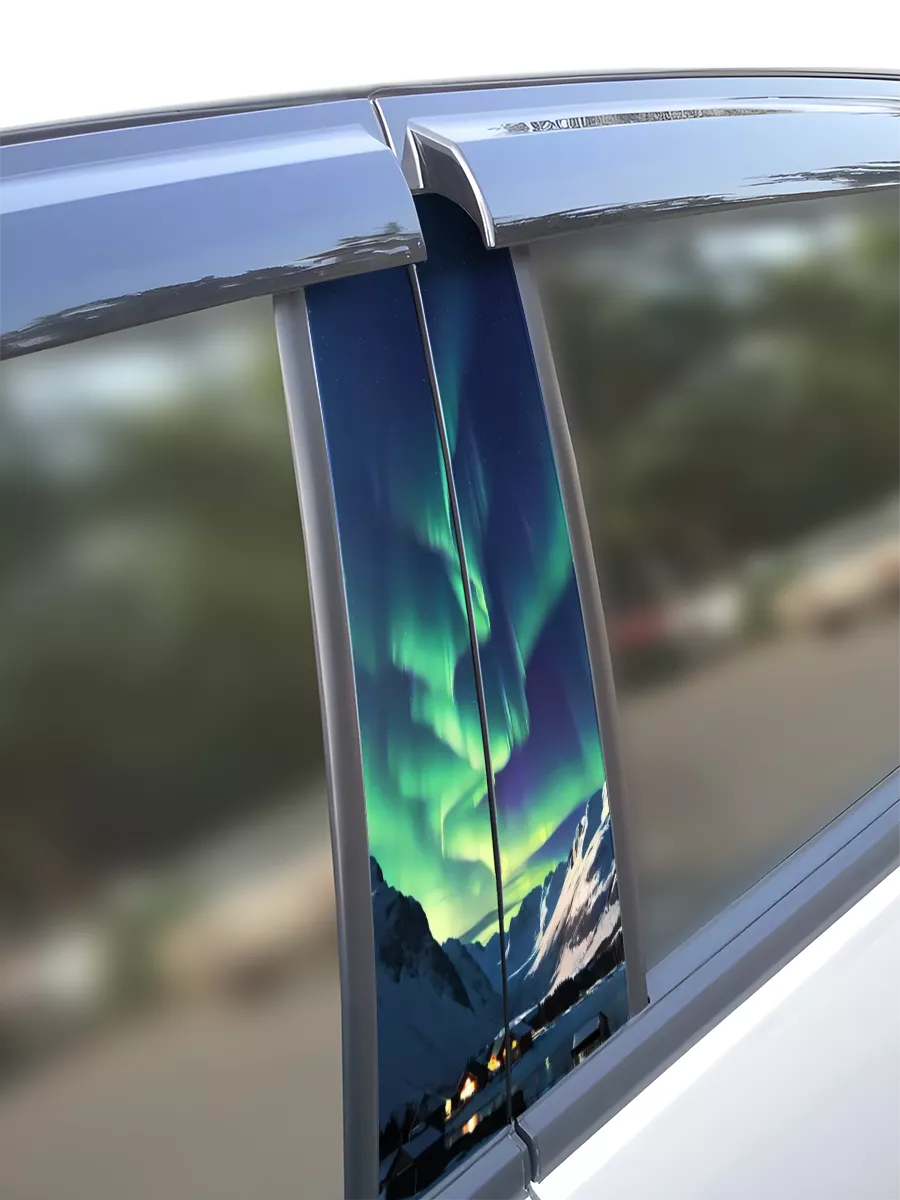 Наклейка на боковые стойки авто с горным пейзажем позволяет выделить автомобиль и подчеркнуть любовь к природе. В комплект входит две наклейки, по одной на каждую боковую стойку, чтобы визуально сбалансировать внешний вид.