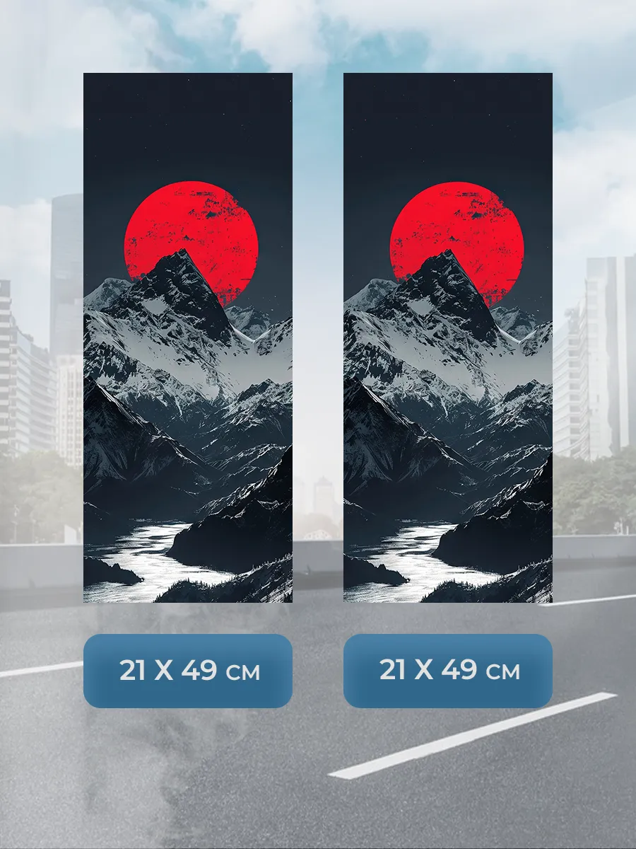 Набор из двух наклеек на боковые стойки авто размером 21x49 см каждый позволяет подчеркнуть индивидуальность автомобиля. Комплект рассчитан на две стороны и подходит для множества моделей. В коллекции имеются разнообразные принты, от природы до графики, включая изображения гор и пейзажей.