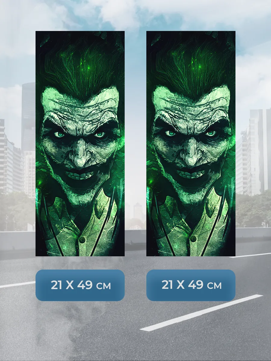 Размер одной наклейки составляет 21×49 см, что подходит для ряда моделей. В коллекции представлены разнообразные принты, включая аниме, героев фильмов и реалистичные изображения природы; данная позиция Джокер 308 отличается ярким дизайном и высоким качеством печати.