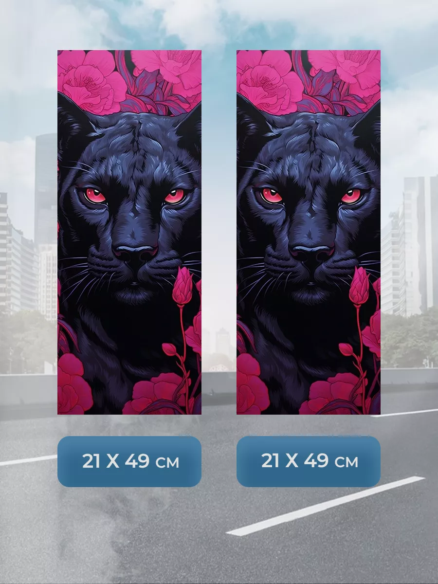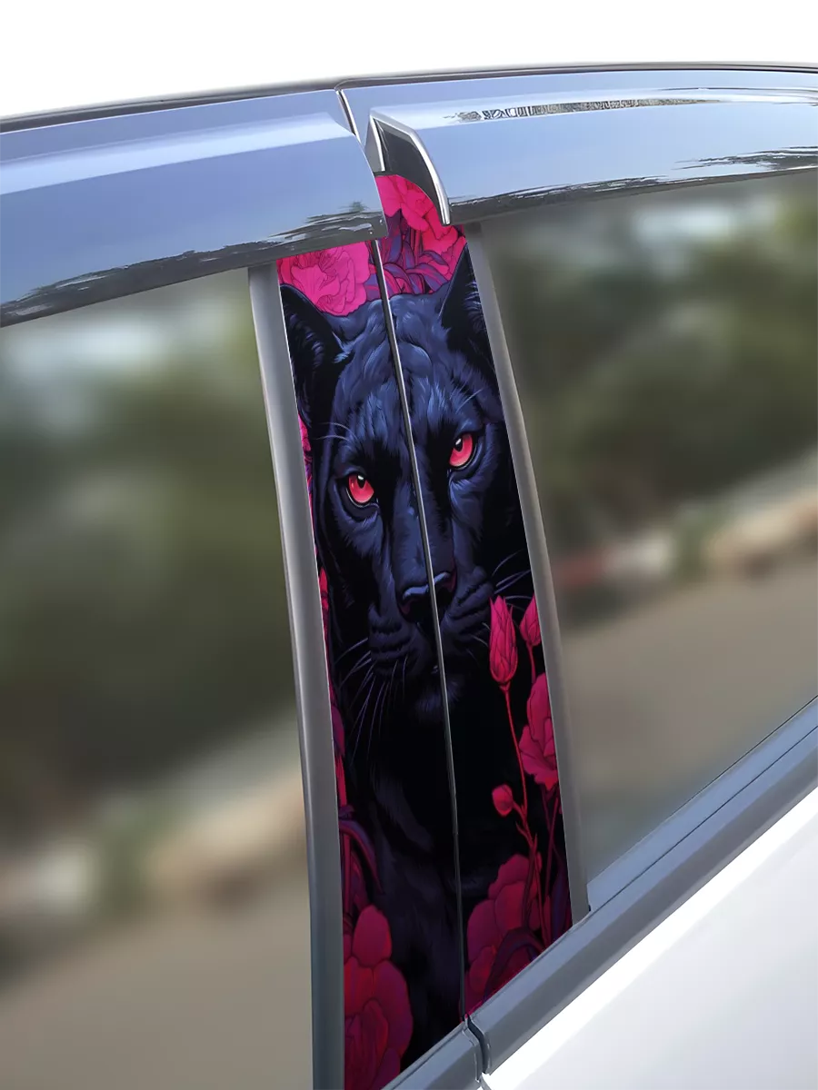 Эта серия наклеек на боковые стойки автомобиля создана для подчёркивания индивидуальности и стиля вашего транспорта. В комплект входят две наклейки для обеих сторон машины и размер каждой штуки 21×49 см. В коллекции встречаются разнообразные принты: от ярких аниме-персонажей и героев фильмов до реалистичных изображений животных, растений и природы, в том числе пантеры.
