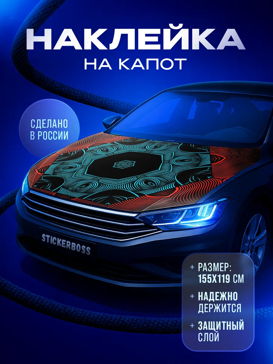 Большая декоративная наклейка на капот автомобиля размером 155х119 см позволяет быстро изменить внешний вид машины и придать ей индивидуальность. Изготовлена на самоклеящейся виниловой пленке ПВХ с верхним ламинированным слоем, что обеспечивает прочность, защиту от выцветания и стойкость к мытью, пыли и влаге. При желании можно подрезать лист под нужный размер, чтобы точно попасть на форму капота. Наклейка легко снимается и не оставляет следов при демонтаже.