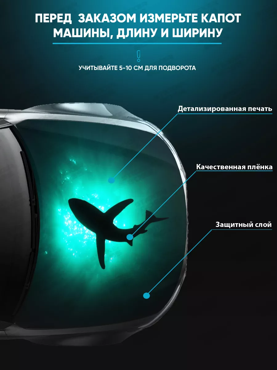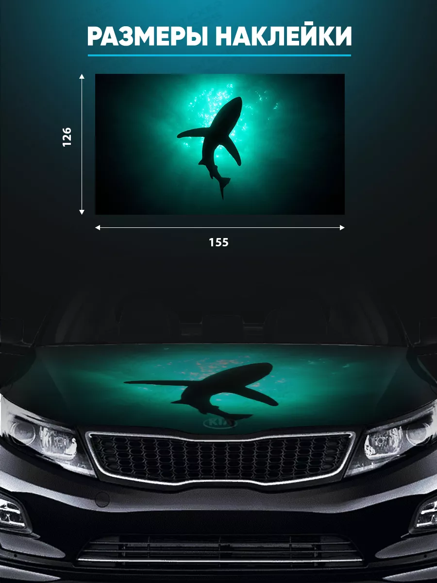 Представляем большую наклейку на капот авто с акулой, которая станет идеальным акцентом для вашего автомобиля