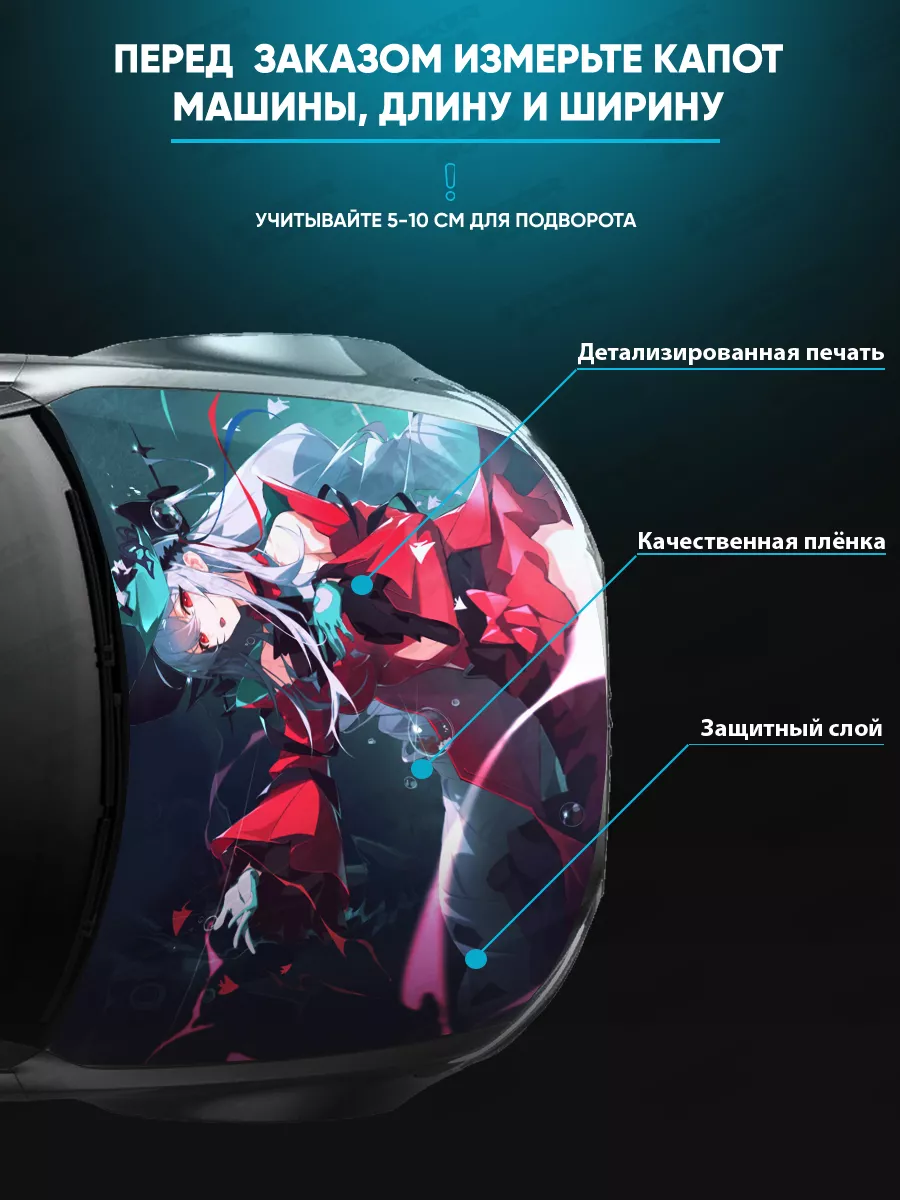 Преобразите внешний вид вашего автомобиля с помощью уникальной наклейки на капот с аниме девушками! Эта большая наклейка размером 155х119 см идеально подойдет для большинства популярных моделей, будь то седан, хэтчбек или универсал