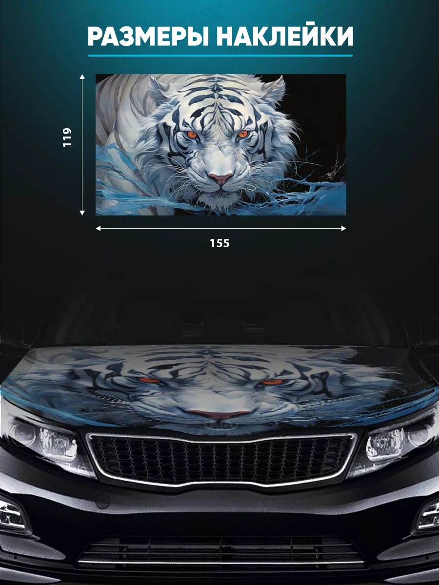 Наклейка предназначена для украшения внешней поверхности капота автомобиля, визуально дополняя стиль машины и передавая индивидуальный настрой дизайна.