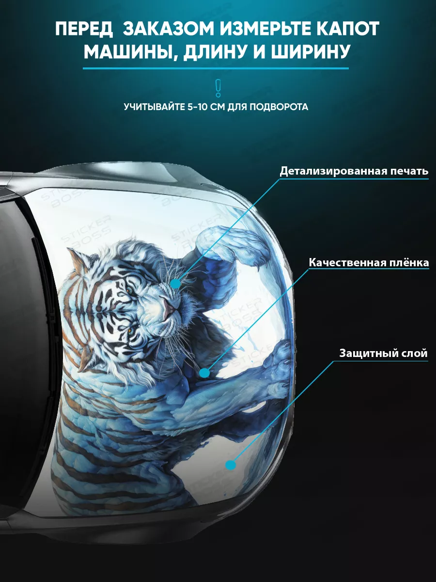 Декоративное оформление внешнего вида капота для придания автомобилю индивидуальности. В коллекции Stickerboss представлены различные сюжеты: животные, аниме, флаги, города и пейзажи — найдёте подходящий вариант.