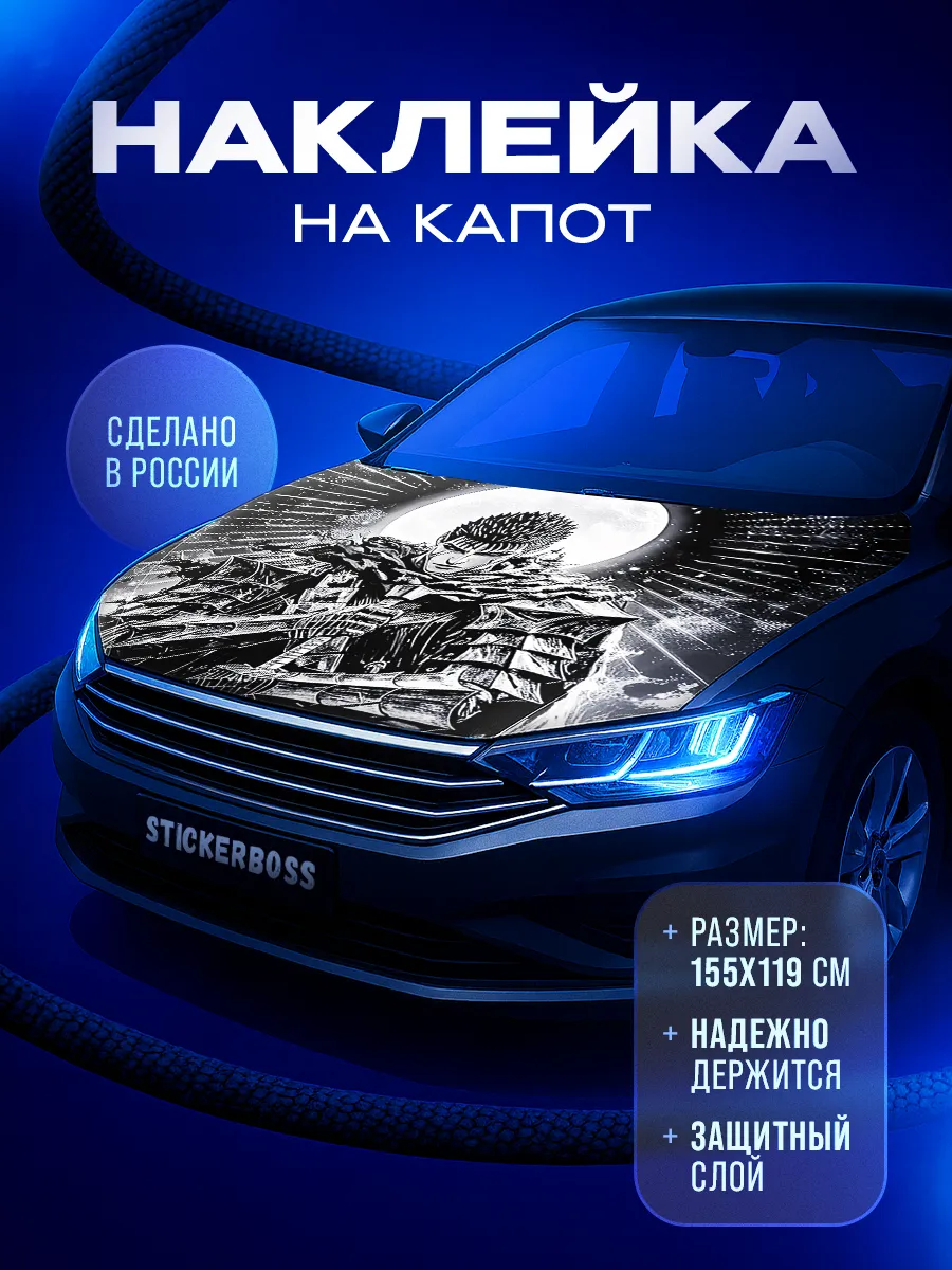 Материал: самоклеющаяся виниловая пленка ПВХ. Размер: 155х119 см. Размещение: капот. Страна производства: Россия. Упаковка: защитная туба. Производитель: Stickerboss. Применение: для авто.
