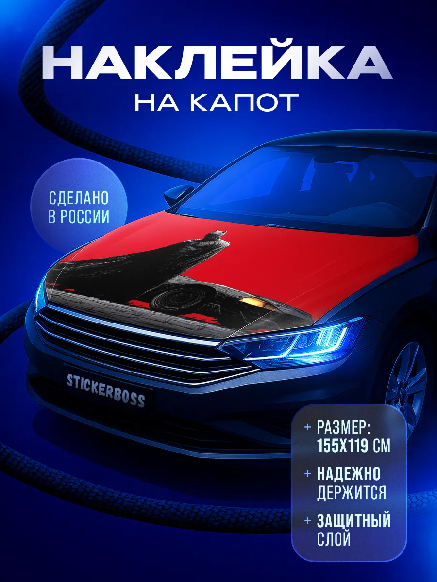 Материал изделия: самоклеящаяся виниловая пленка ПВХ. Размер: 155х119 см. Размещение наклейки: капот. Страна производства: Россия. Артикул производителя: Капотная0724. Бренд: Stickerboss. Упаковка: защитная туба.