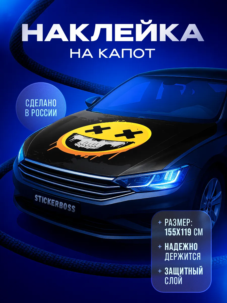 Большая наклейка на капот автомобиля размером 155×119 см создаёт выразительный внешний акцент и может украсить большинство современных моделей: седаны, хэтчбеки и универсалы. Изготовлена на основе высококачественной самоклеящейся виниловой пленки ПВХ, которая обеспечивает надежное сцепление с поверхностью и стойкость к мытью, пыли и влаге.
