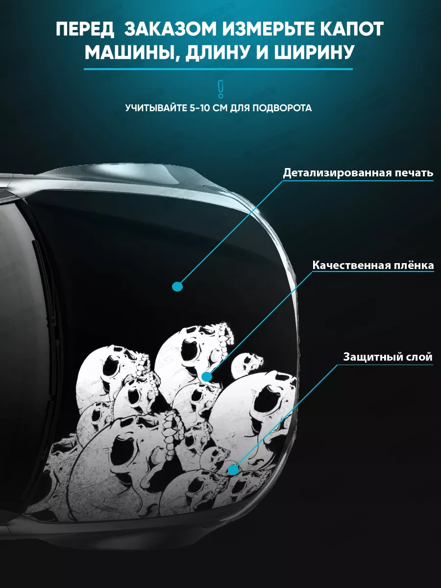 Наклейку можно использовать для украшения капота любого популярного автомобиля: седана, хэтчбека или универсала. При необходимости лист может быть подрезан под нужный размер, чтобы максимально точно подогнать под форму капота.