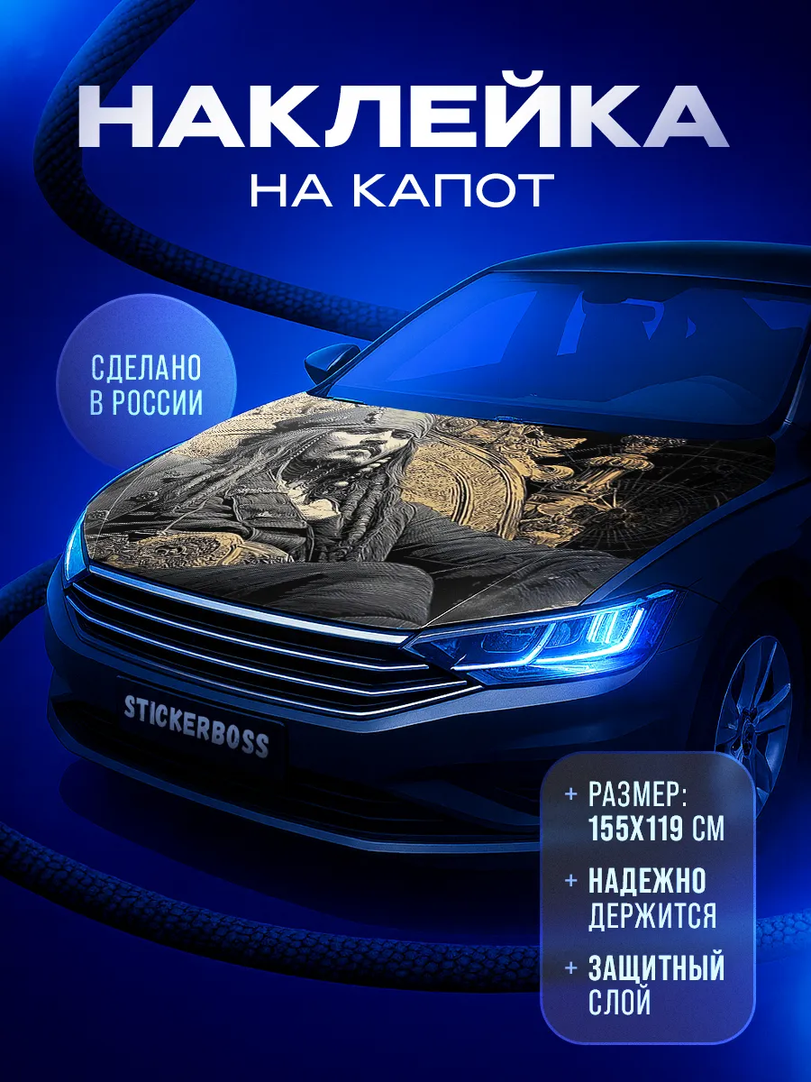 Большая декоративная наклейка на капот автомобиля размером 155x119 см позволяет выразительно оформить внешний вид машины и добавить индивидуальности. Наклейка выполнена на самоклеящейся виниловой пленке ПВХ, которая обеспечивает надежное крепление, стойкость к мытью, влаге и агрессивным условиям погоды. Дополнительный верхний слой ламинации предотвращает выгорание цвета на солнце. При необходимости можно подрезать лист под нужный размер. Легко снимается, не оставляя следов. В ассортименте множество вариантов: принты с надписями, персонажи фильмов, изображения животных, стиль аниме, флаги России, города и пейзажи. Наклейка украшает капот и подчеркивает стиль машины, соответствует вашим взглядам на дизайн. Товар упаковывается в защитную тубу, что сохраняет качество во время доставки и радует яркими красками. Это отличный подарок на год, день рождения, 8 марта или 23 февраля. Сделайте повседневную езду ярче вместе с Stickerboss!