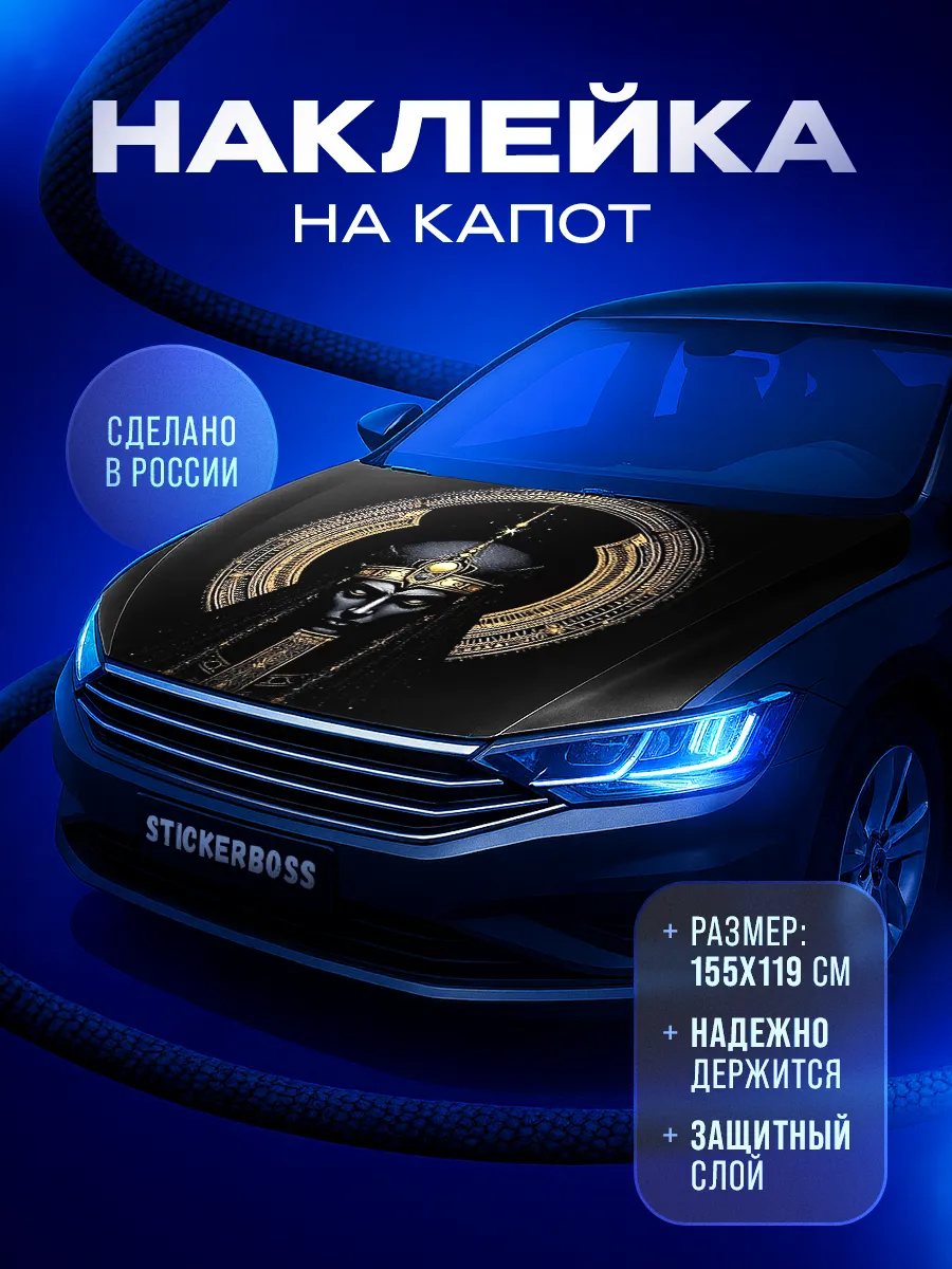 Эта наклейка служит способом придать капоту оригинальность и стиль без долгих шлифовок. Размер 155х119 см обеспечивает универсальность для многих моделей, а качественный винил ПВХ с ламинацией сохраняет яркость и защиту от влаги.