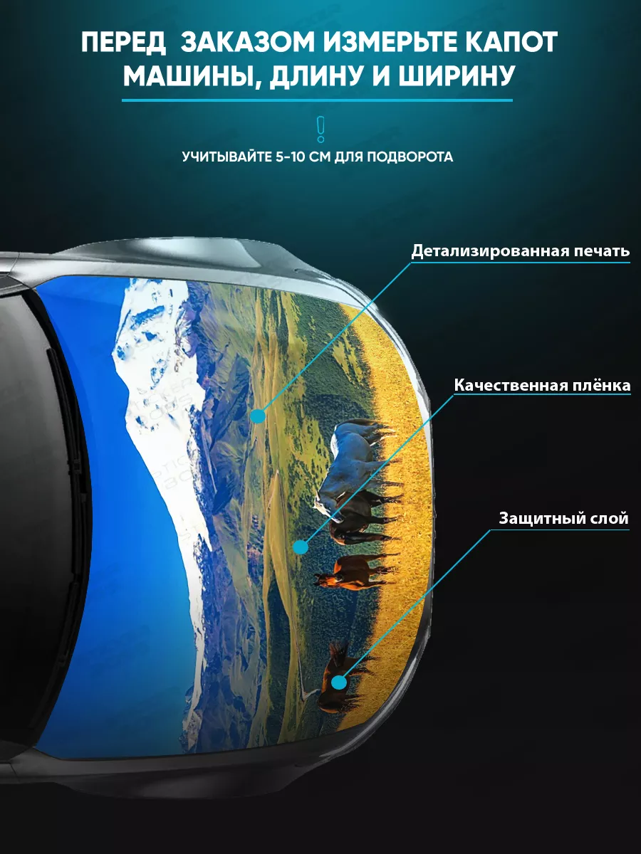 Наклейка подходит для капотов большинства популярных автомобилей: седан, хэтчбек и универсал. Она добавит уникальности и подчеркнет вашу любовь к природе.