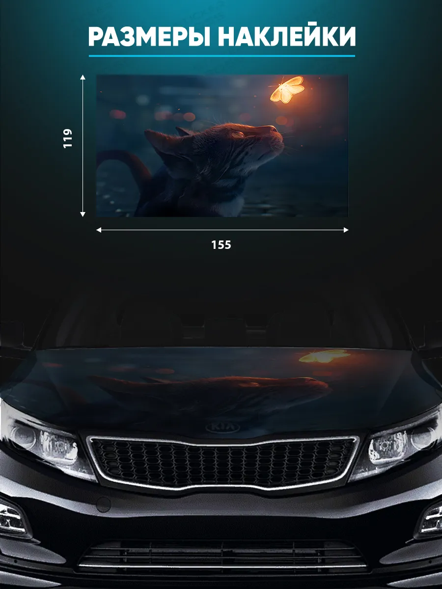 Представляем большую наклейку на капот с изображением милых котов, которая станет идеальным акцентом для вашего автомобиля