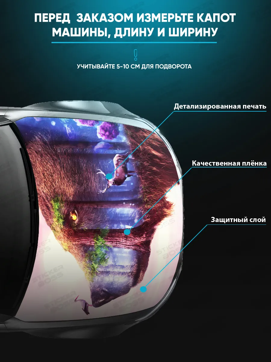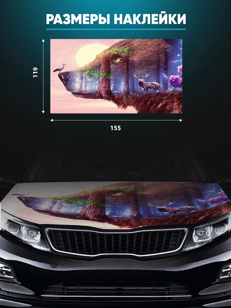Представляем большую наклейку на капот авто с изображением бурого медведя, которая станет идеальным акцентом для вашего автомобиля