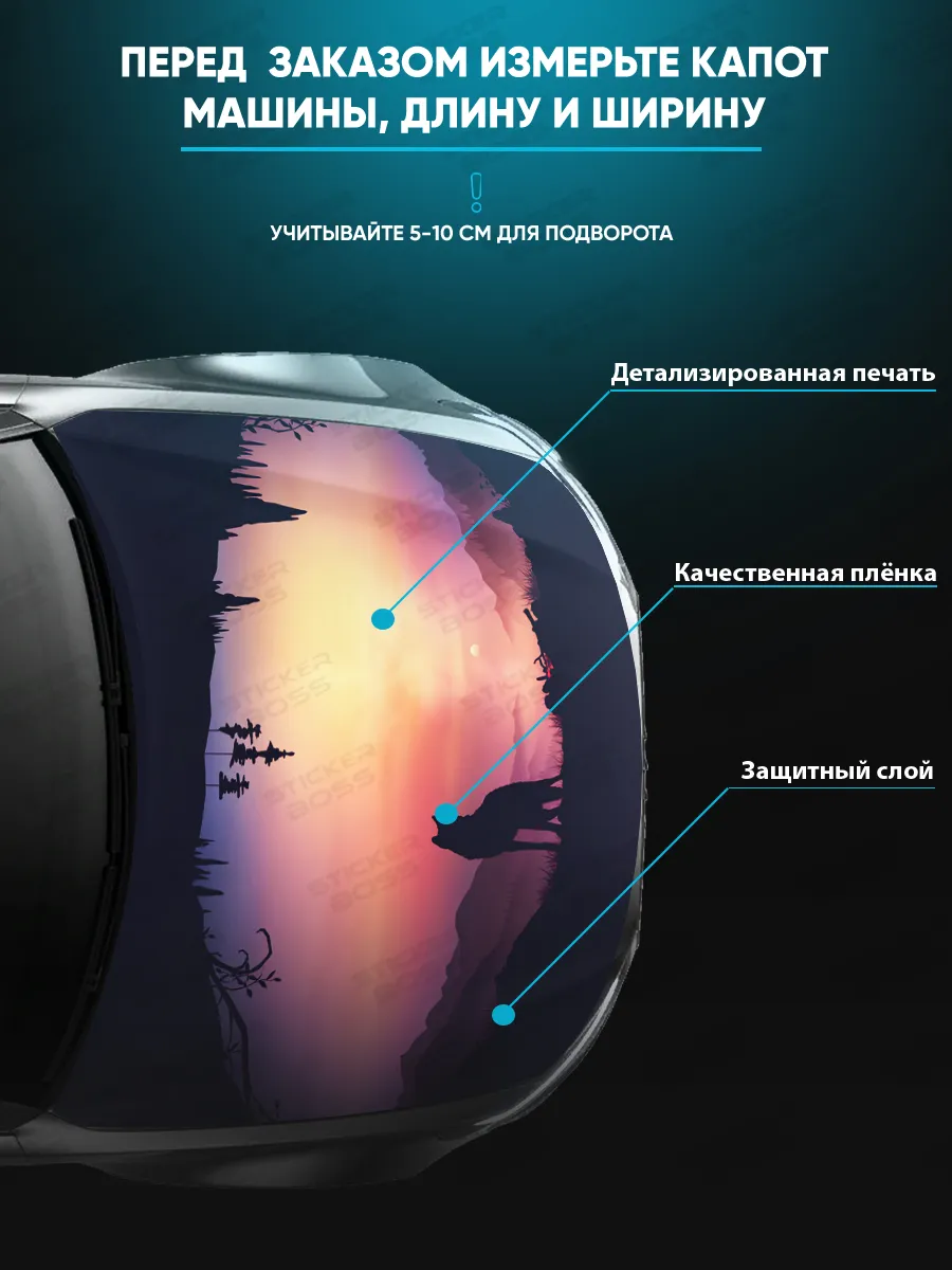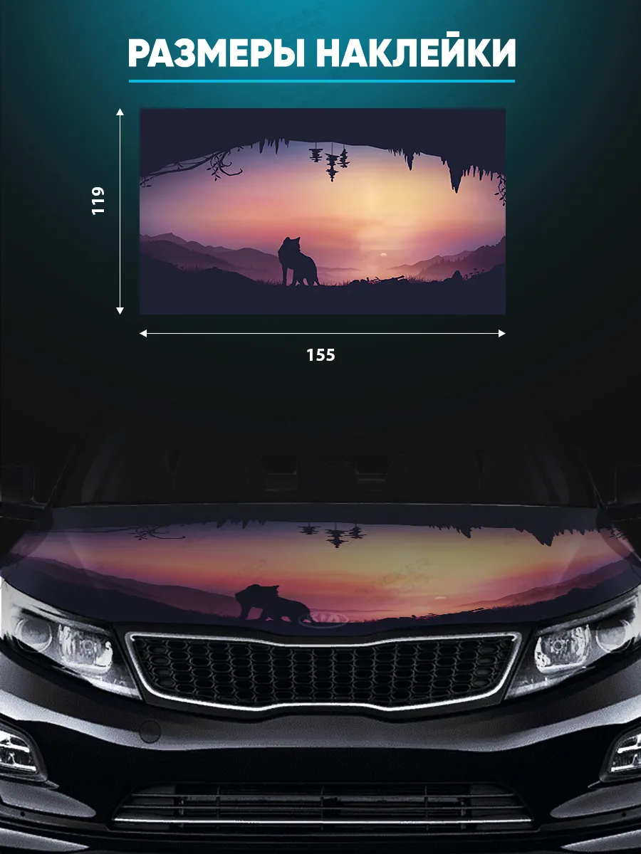 Представляем большую наклейку на капот с изображением волков, которая станет идеальным акцентом для вашего автомобиля