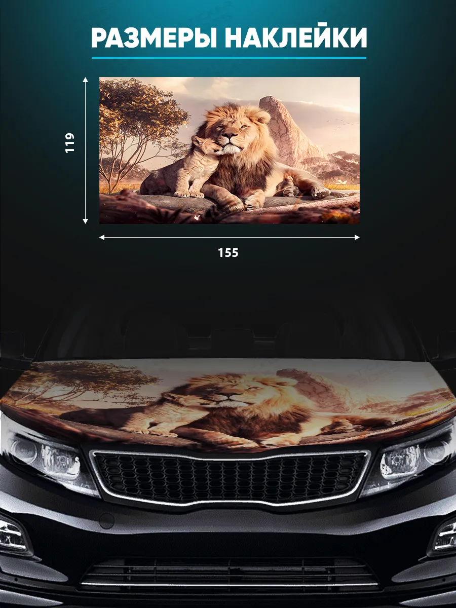 Декоративная наклейка на капот автомобиля с изображением львов предлагает стиль и индивидуальность. Универсальная наклейка подходит для большинства автомобилей и может быть подрезана под нужный капот.