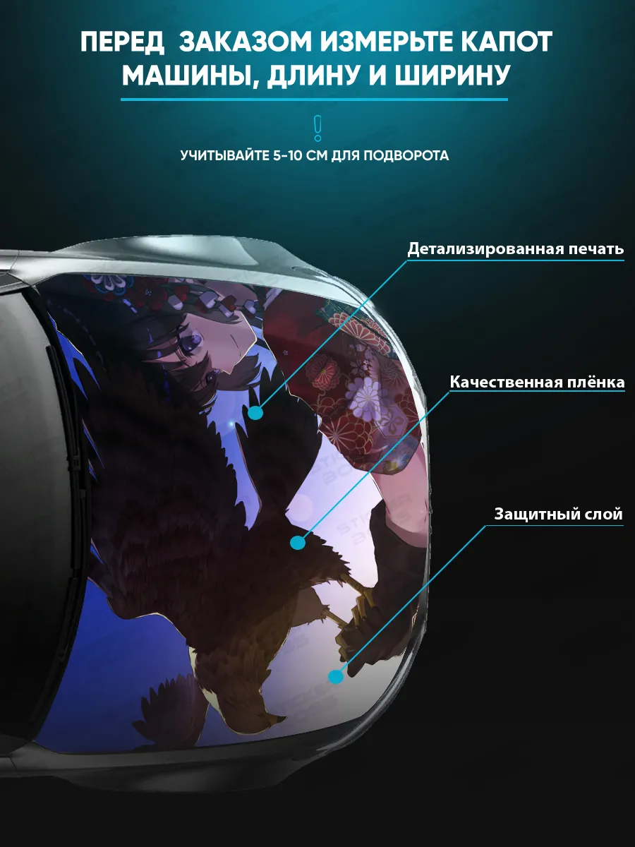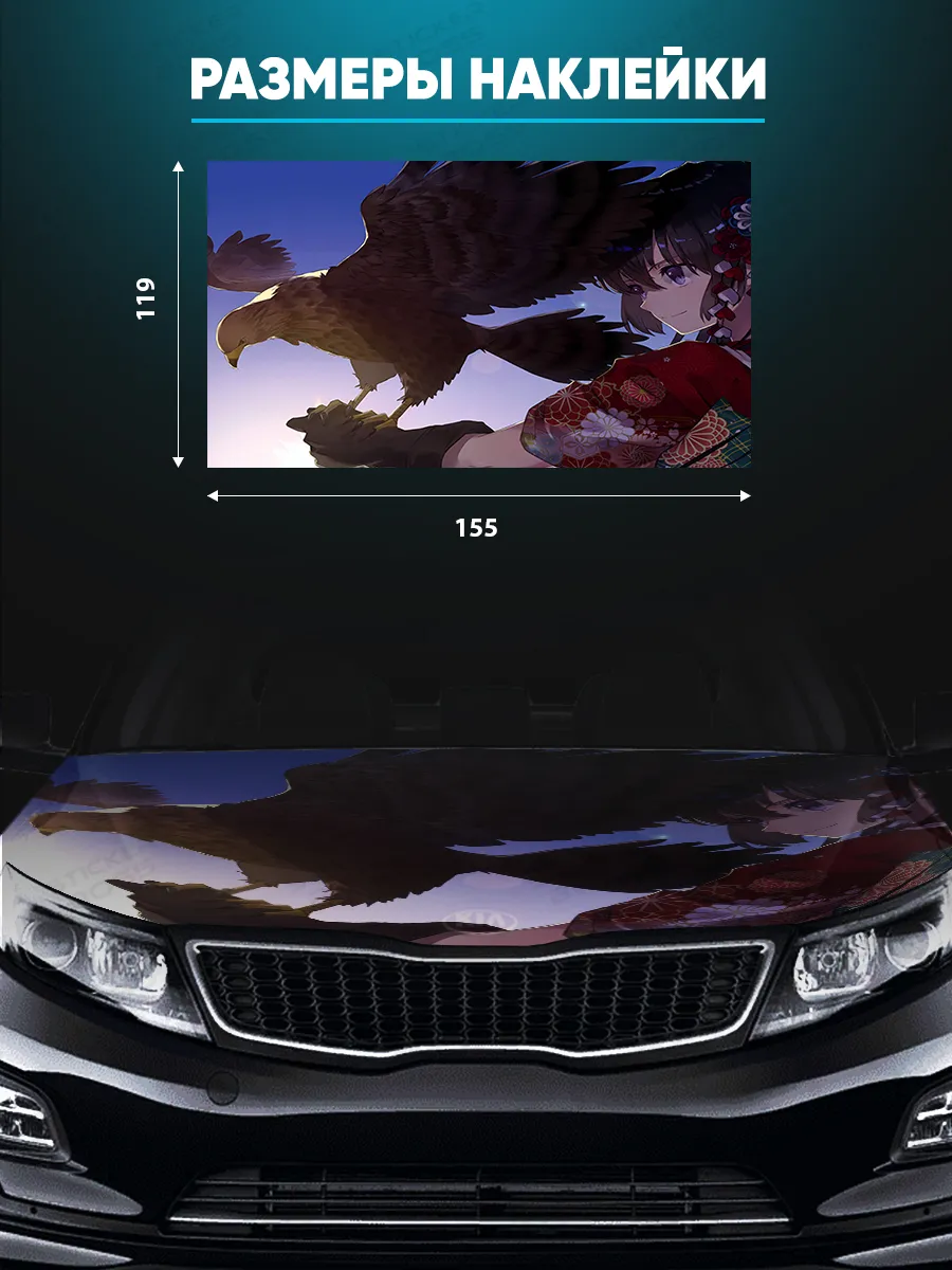 Преобразите внешний вид вашего автомобиля с помощью уникальной наклейки на капот с аниме девушками! Эта большая наклейка размером 155х119 см идеально подойдет для большинства популярных моделей, будь то седан, хэтчбек или универсал