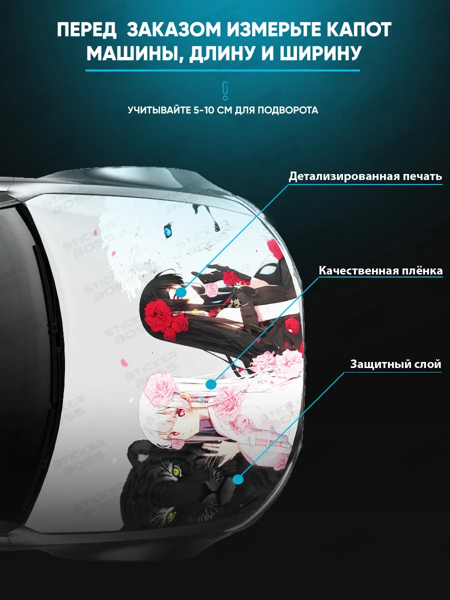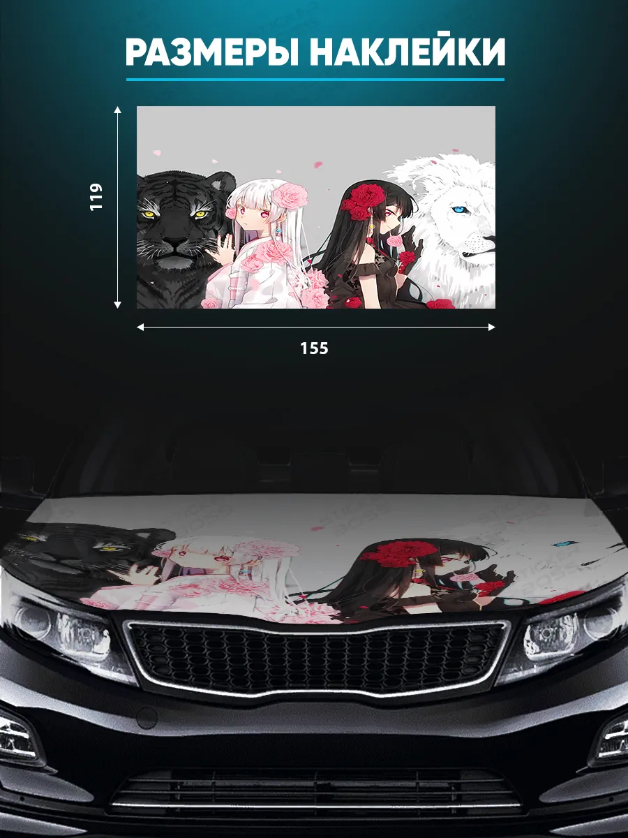 Преобразите внешний вид вашего автомобиля с помощью уникальной наклейки на капот с аниме девушками! Эта большая наклейка размером 155х119 см идеально подойдет для большинства популярных моделей, будь то седан, хэтчбек или универсал