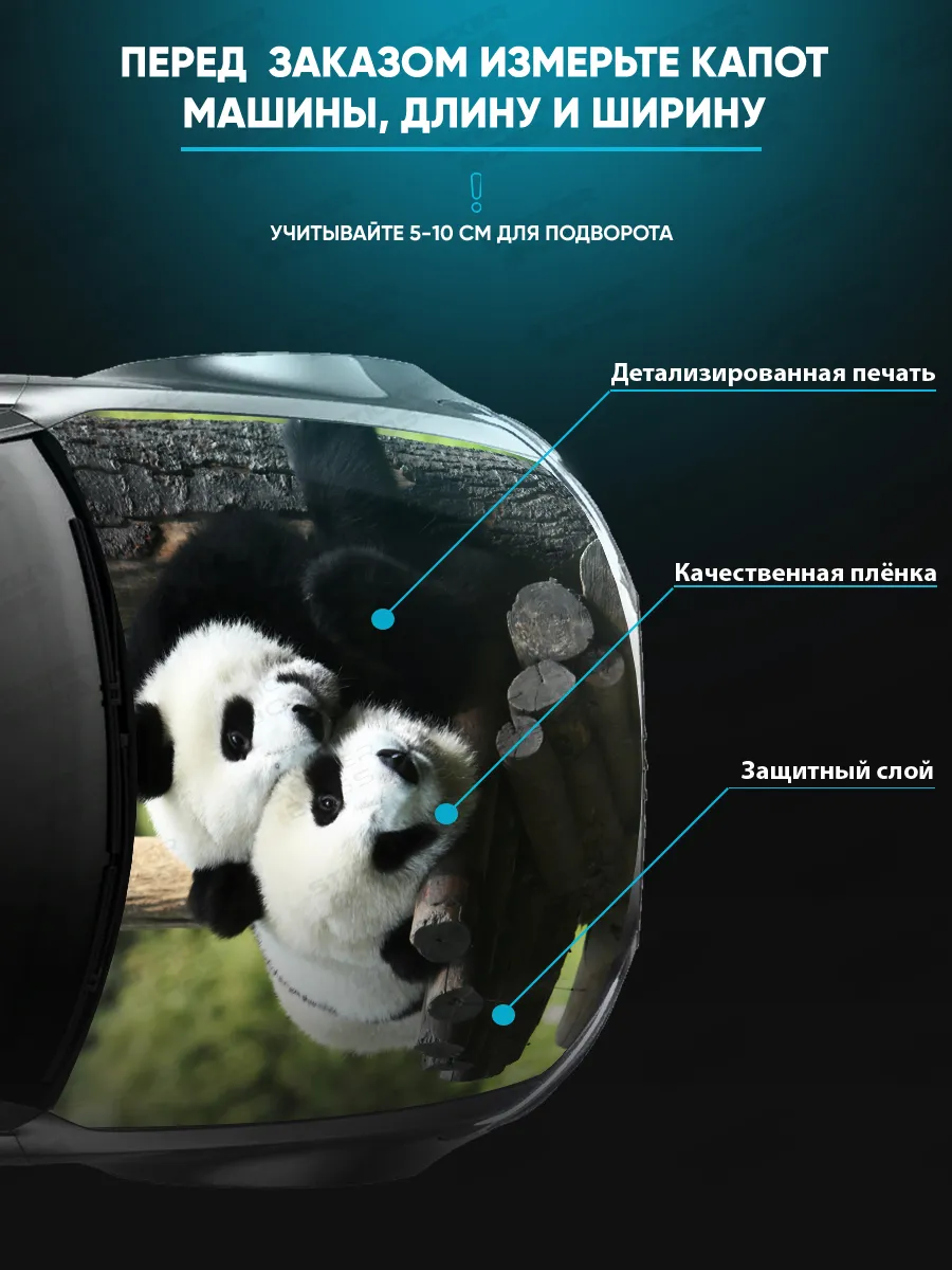 Представляем большую наклейку на капот с изображением милых панд, которая станет идеальным акцентом для вашего автомобиля