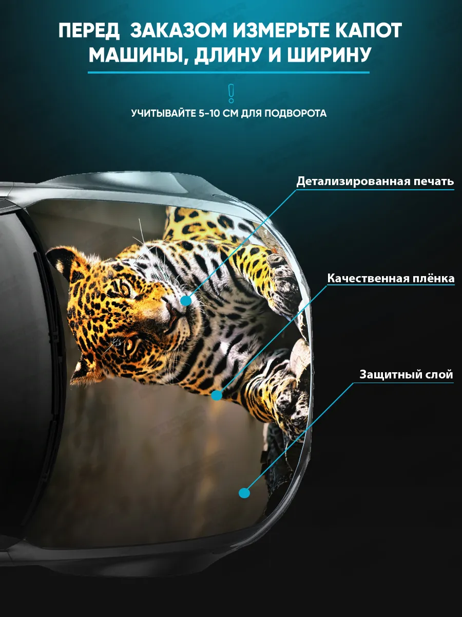 Представляем большую наклейку на капот с изображением леопарда, которая станет идеальным акцентом для вашего автомобиля