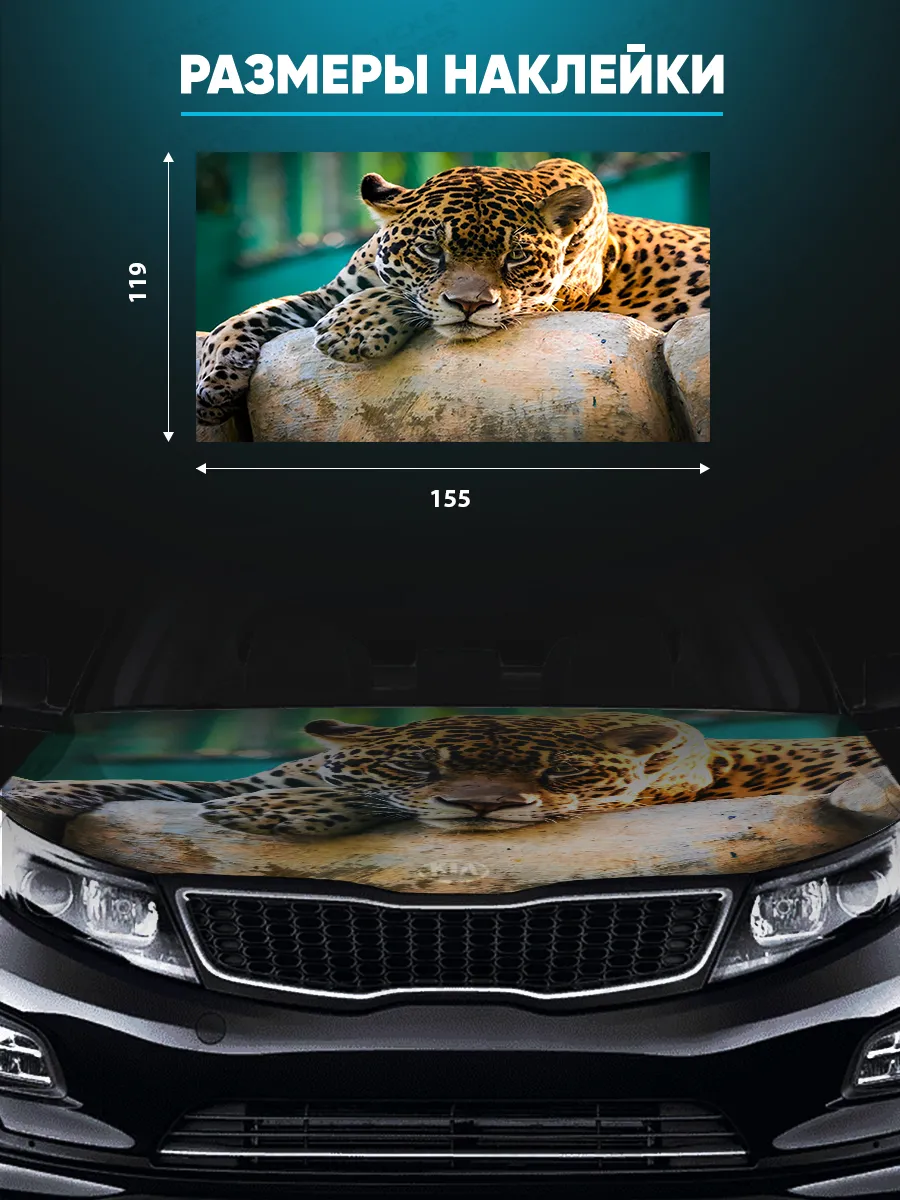 Представляем большую наклейку на капот с изображением леопарда, которая станет идеальным акцентом для вашего автомобиля