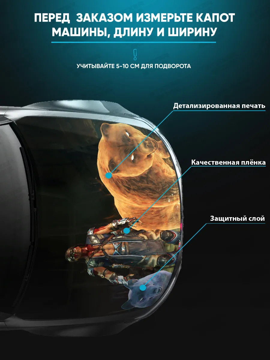 Подходит для капотов большинства популярных авто: седан, хэтчбек и универсал. Наклейка украсит ваш автомобиль стильным акцентом.