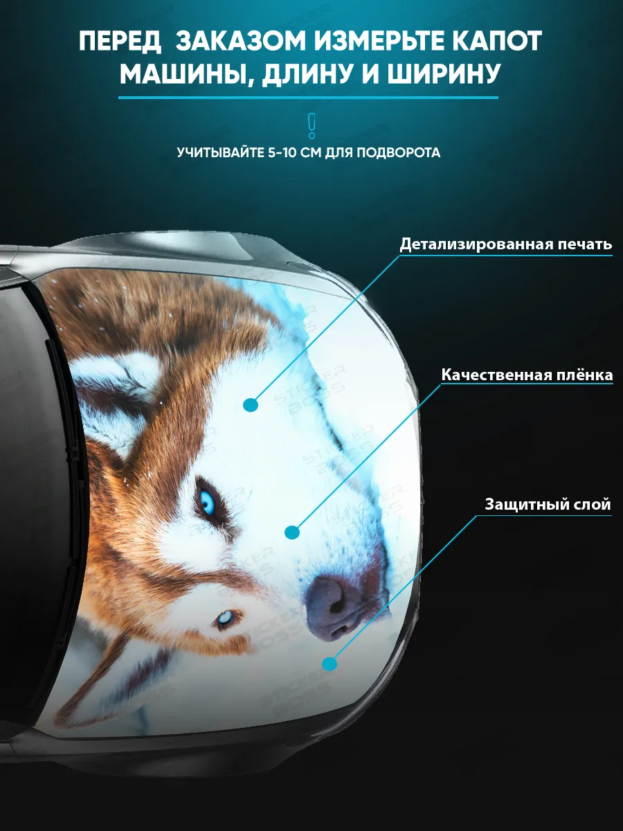 - Назначение: наклейка на капот автомобиля