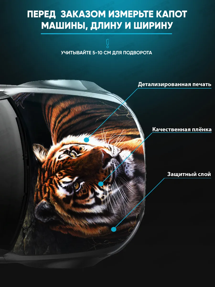 Наклейку можно разместить на капоте автомобиля, чтобы украсить внешний вид и подчеркнуть стиль. При необходимости можно подрезать лист под нужный размер.