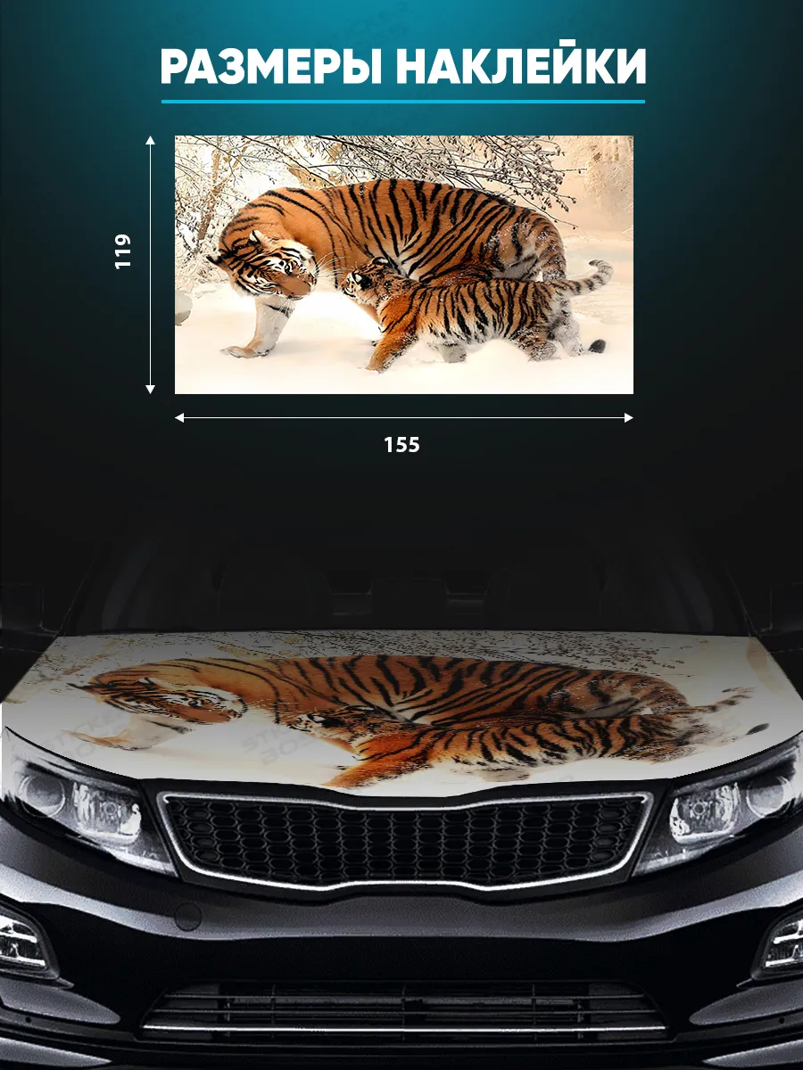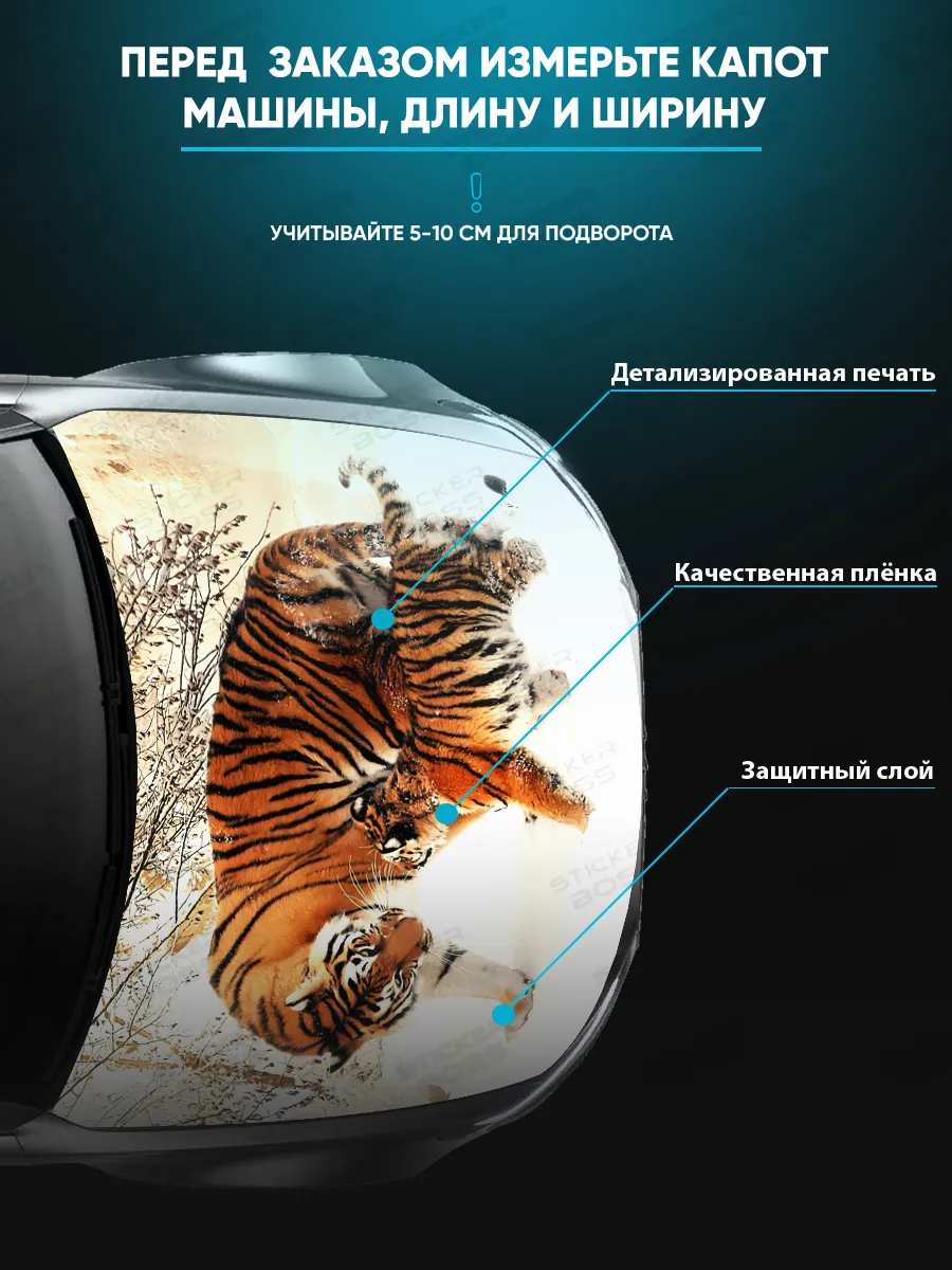 Эта наклейка на капот обеспечивает выразительный внешний вид авто и долговечность за счет прочной самоклеящейся виниловой пленки. Размер 155x119 см позволяет заметно выделяться на большинстве автомобилей.