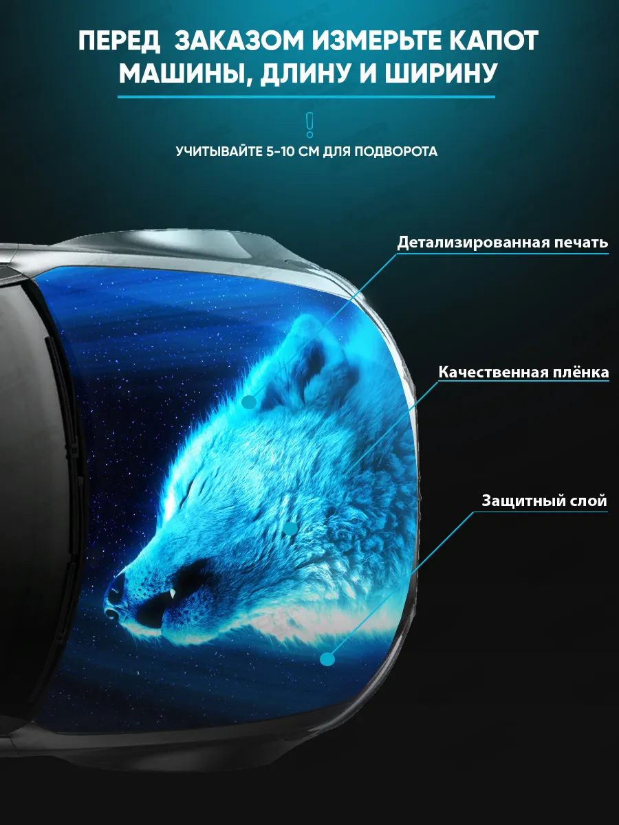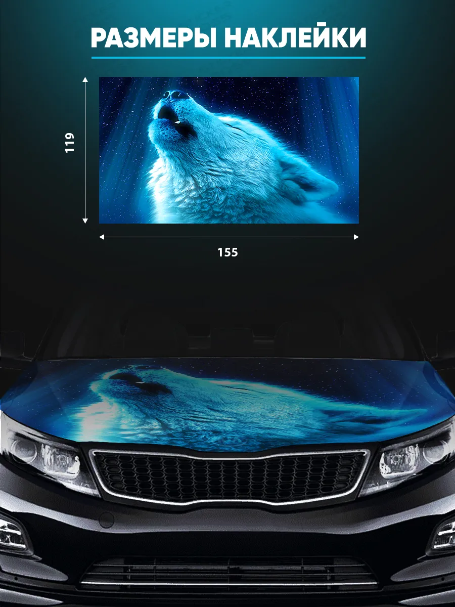 Представляем большую наклейку на капот с изображением волков, которая станет идеальным акцентом для вашего автомобиля